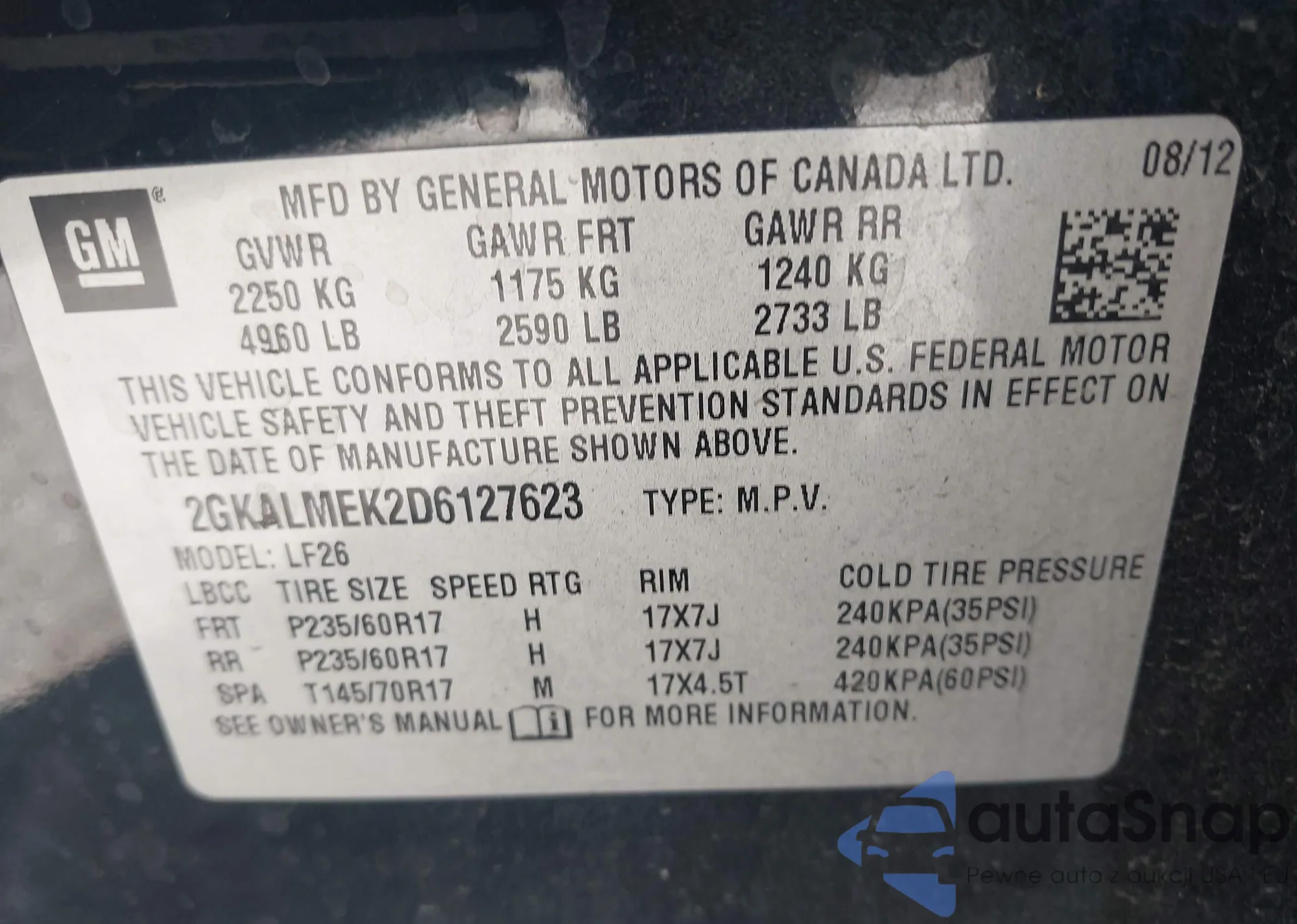 • VIN 2GKALMEK2D6127623