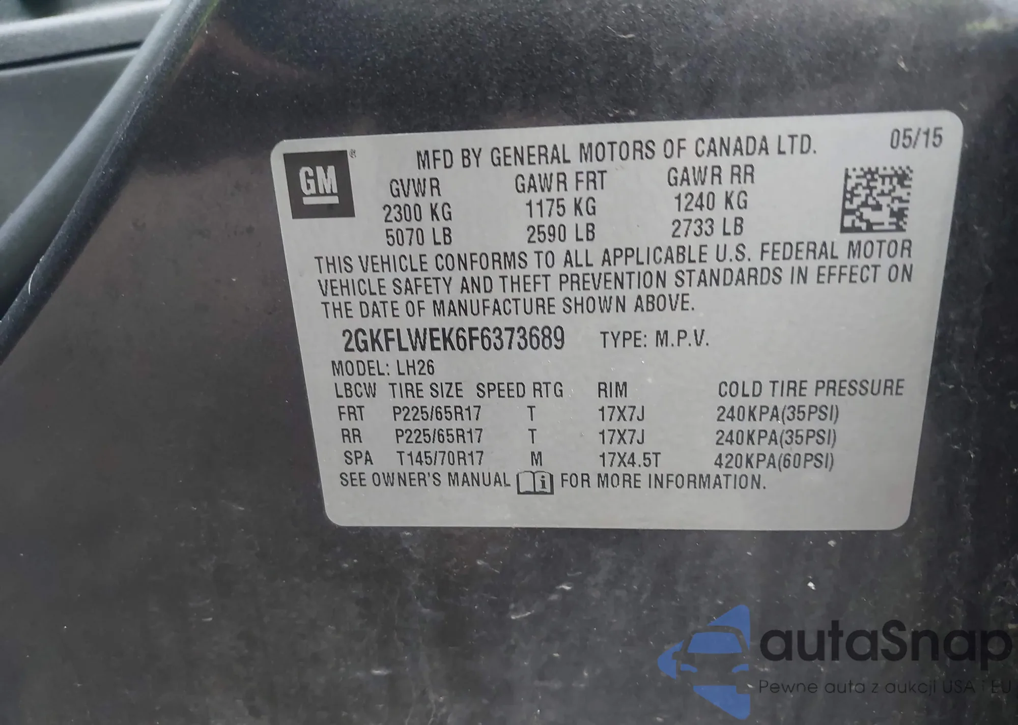 • VIN 2GKFLWEK6F6373689