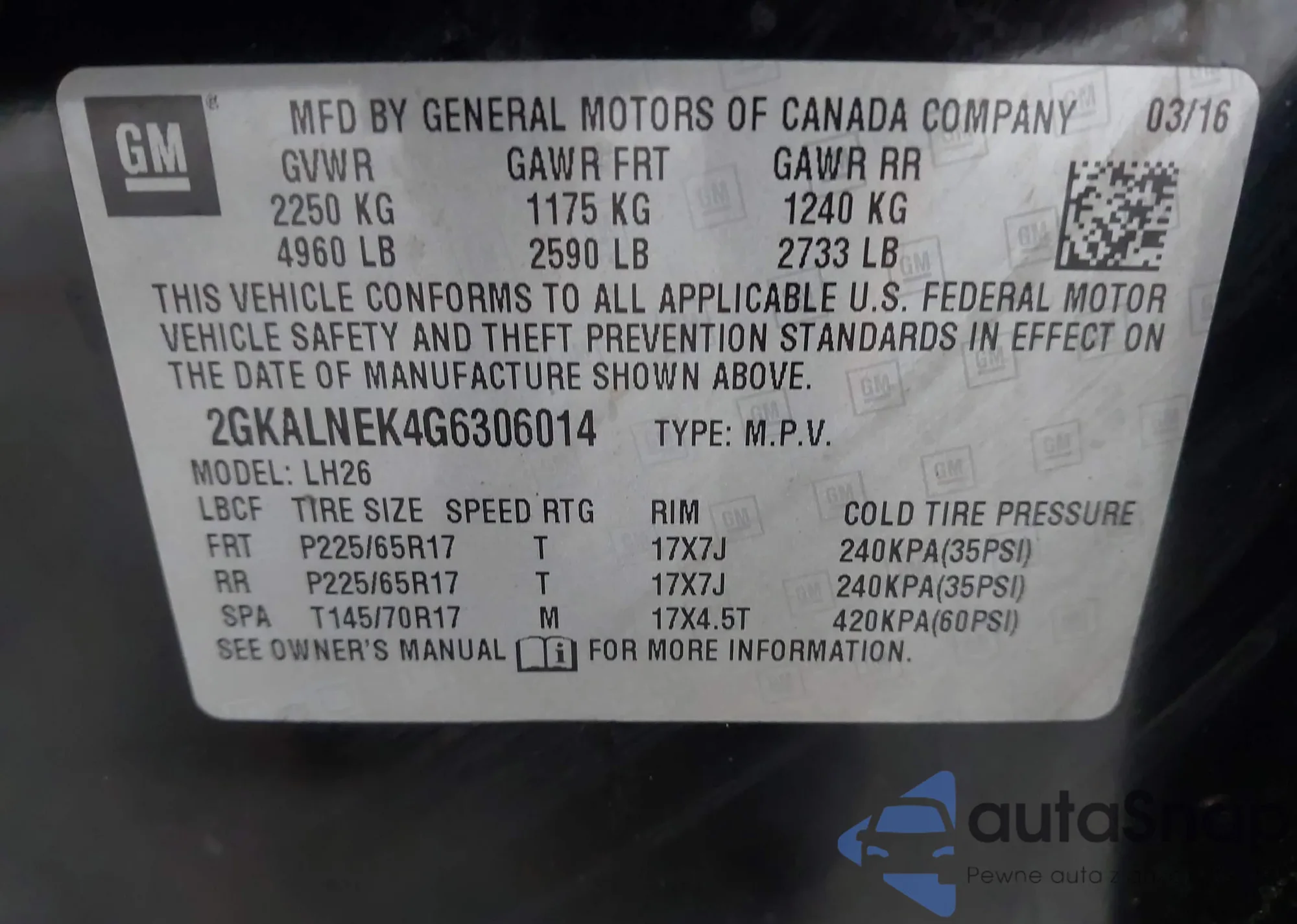 • VIN 2GKFLSEK9G6110901