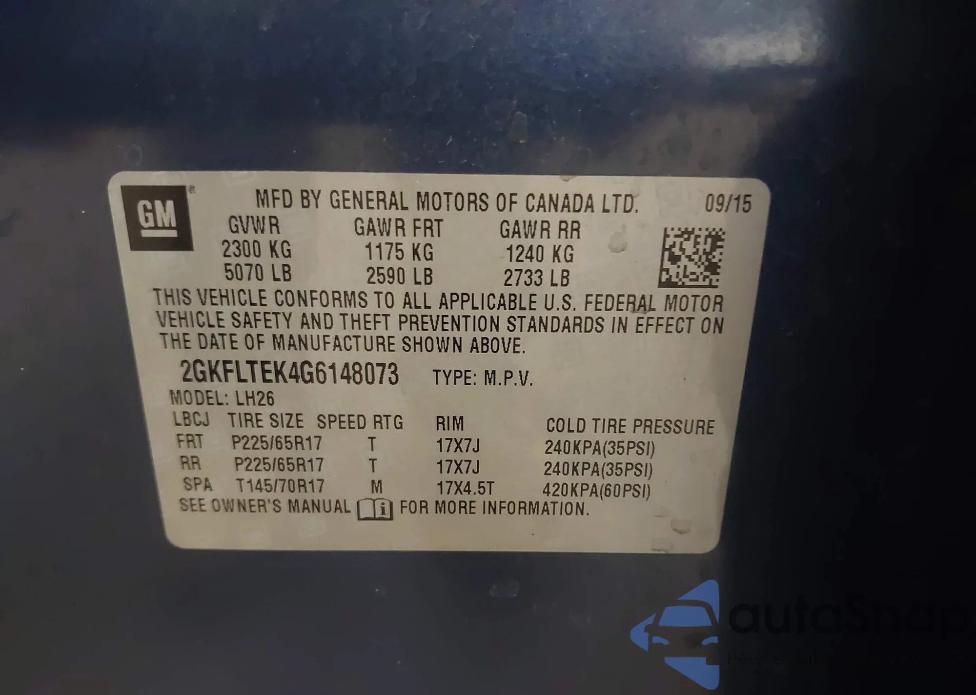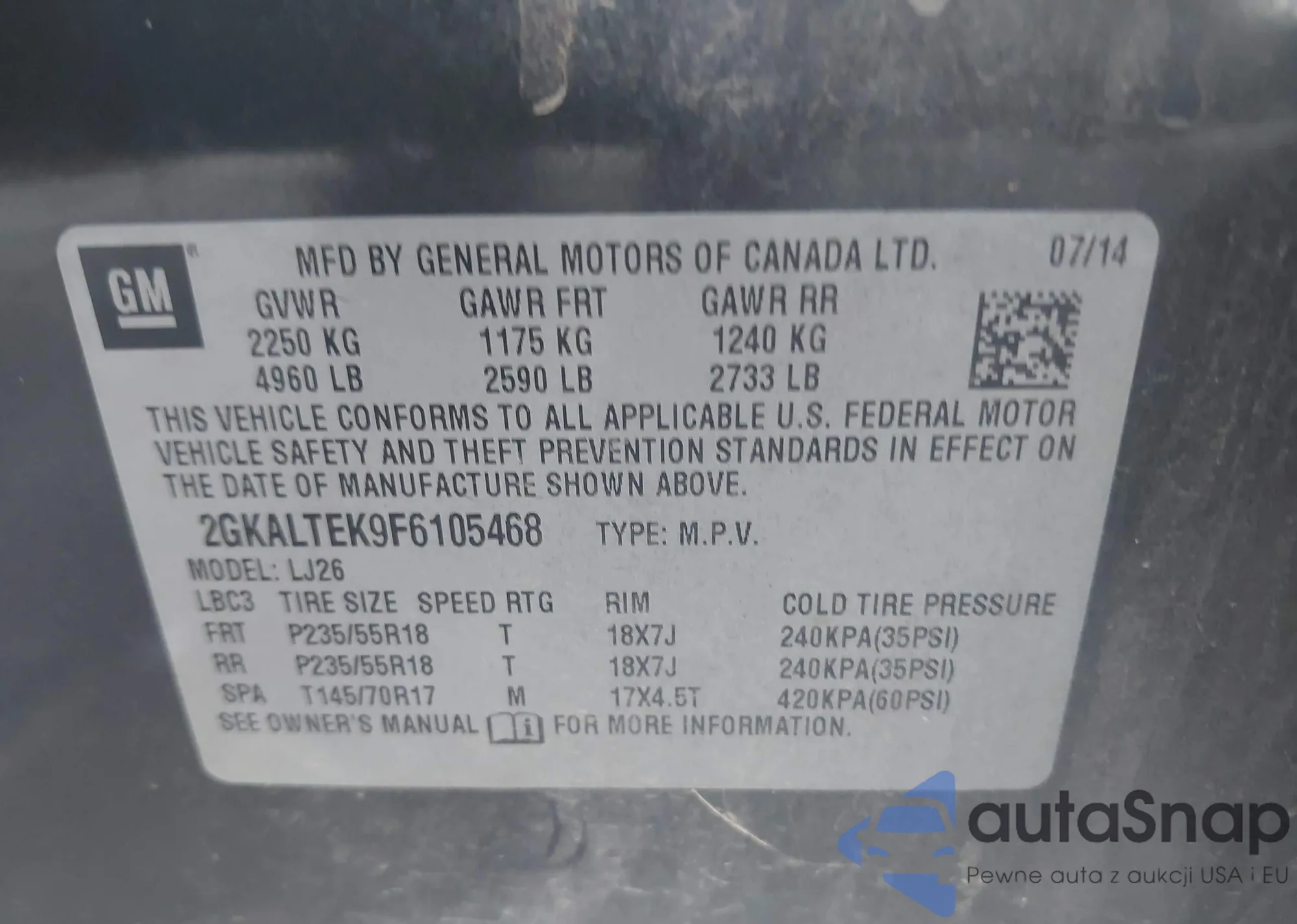 • VIN 2GKALTEK9F6105468