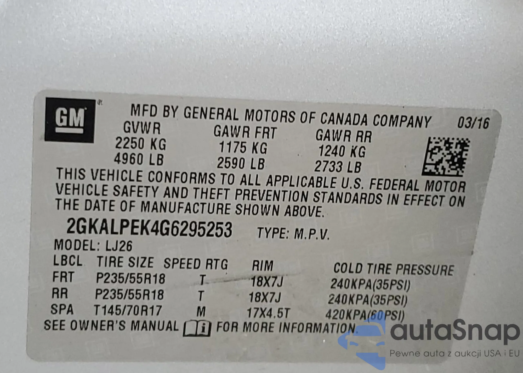 • VIN 2GKALPEK4G6295253