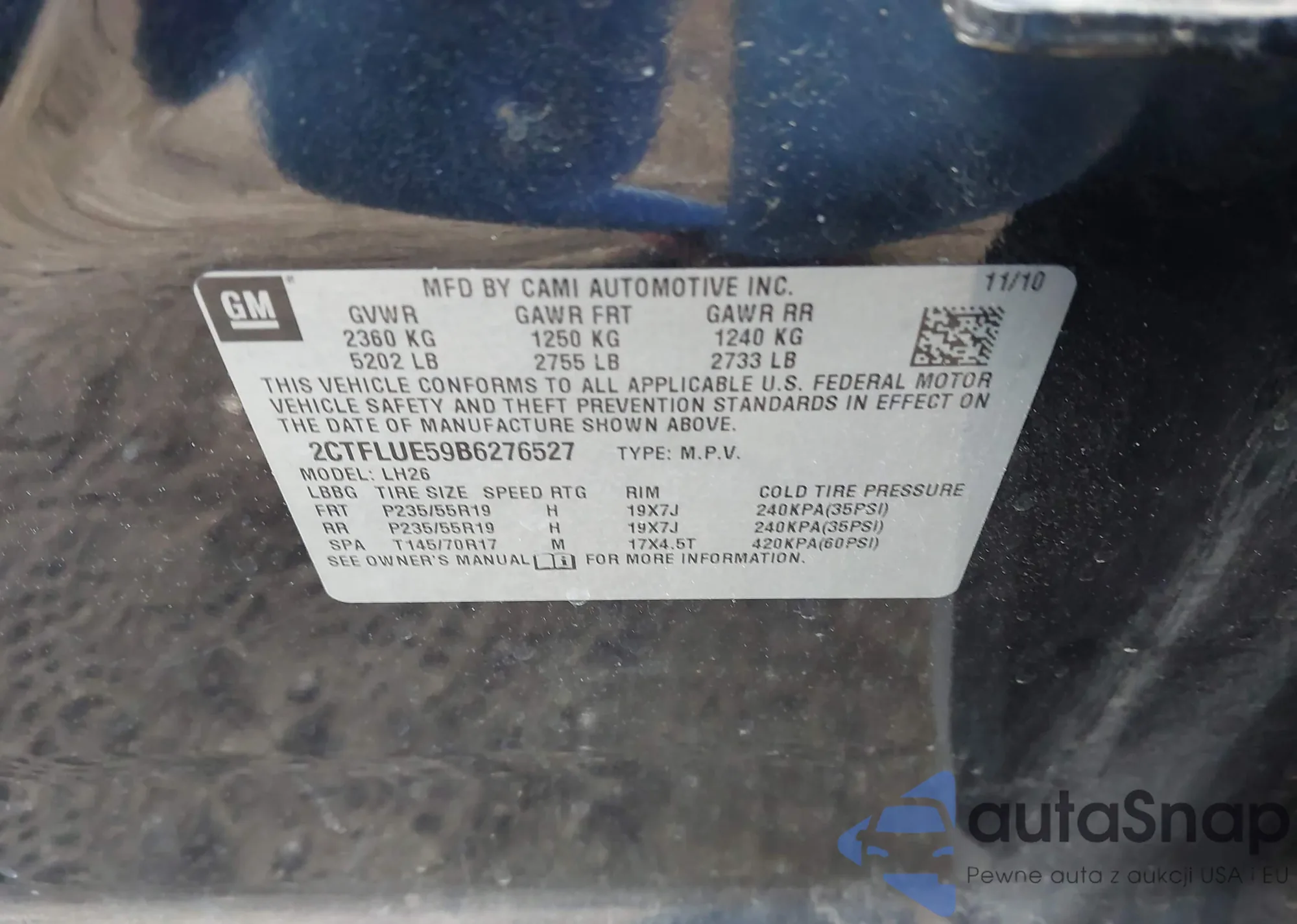 • VIN 2CTFLUE59B6276527