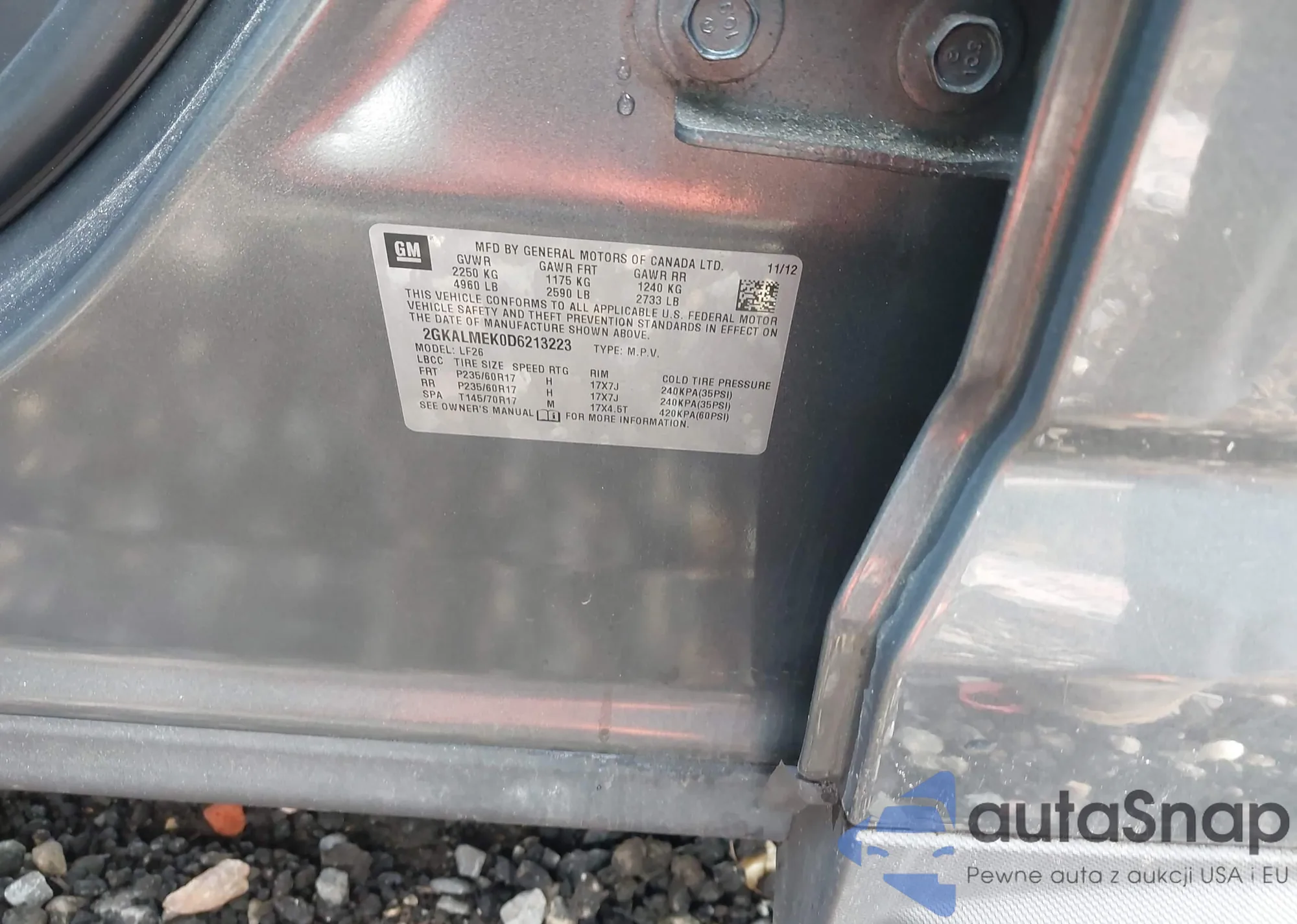• VIN 2GKALMEK0D6213223