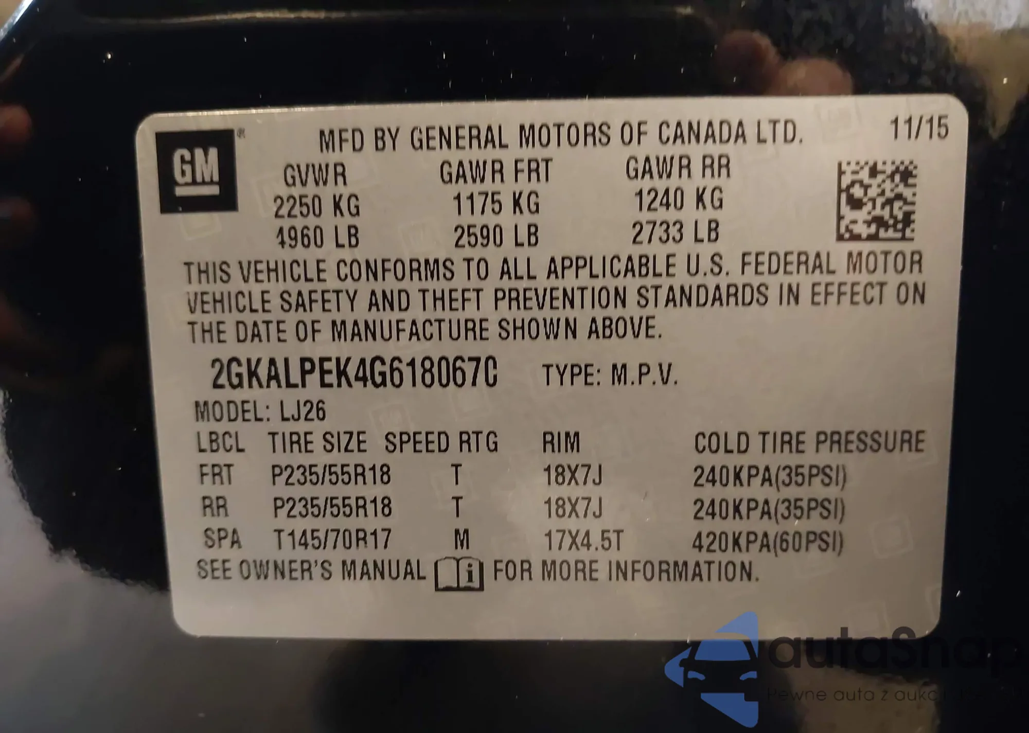 • VIN 2GKALPEK4G6180670