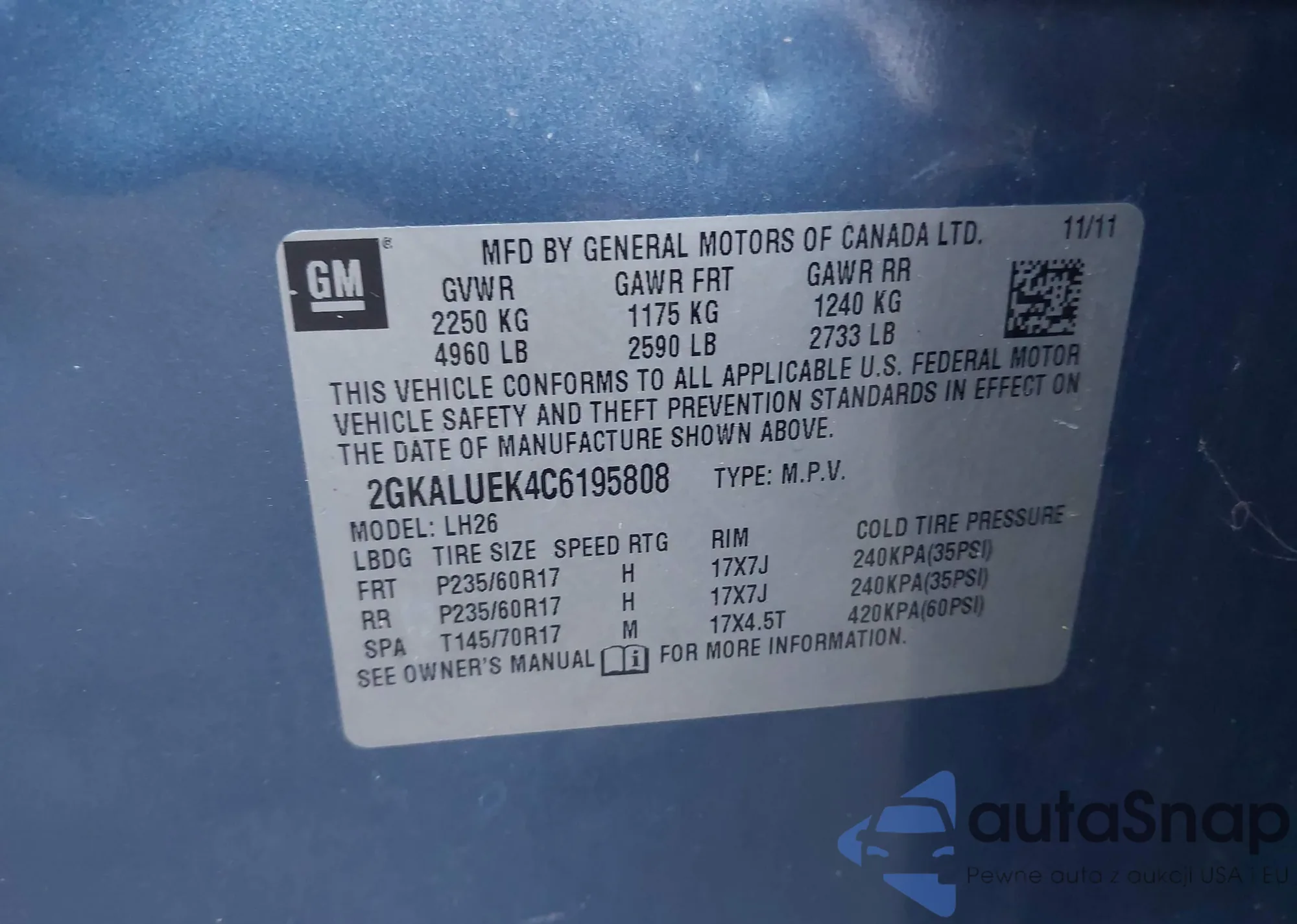 • VIN 2GKALUEK4C6195808