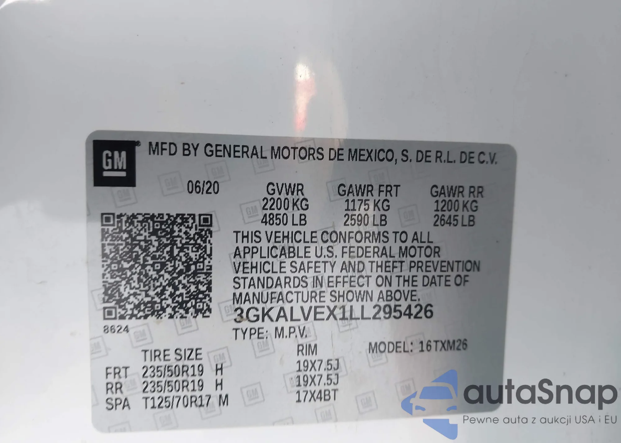 • VIN 3GKALVEX1LL295426