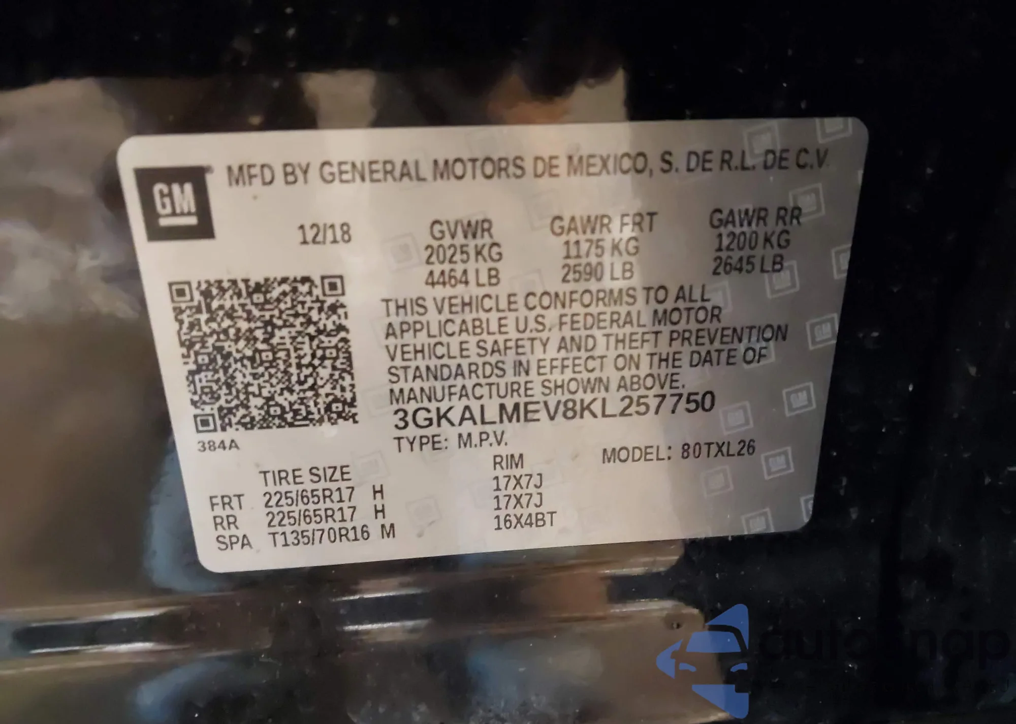 • VIN 3GKALMEV8KL257750