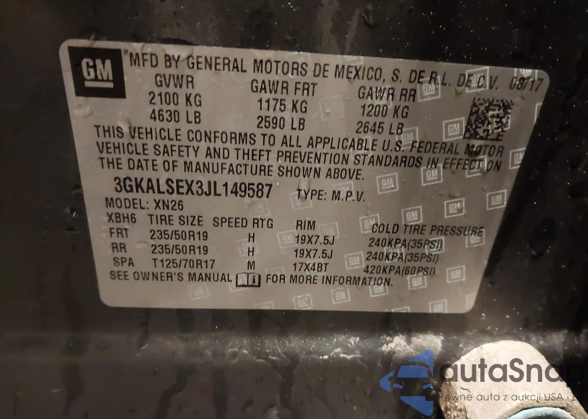 • VIN 3GKALMEX5JL134942