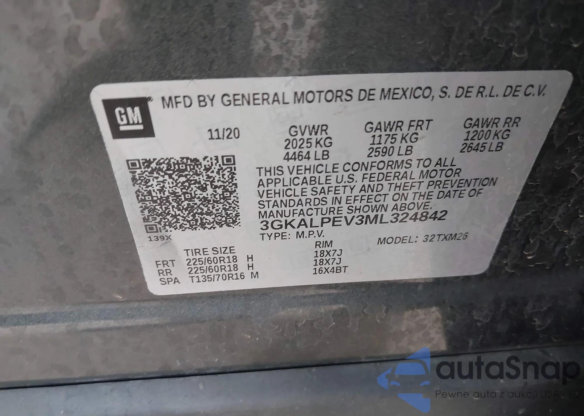LOT: 43839676 VIN: 3GKALPEV3ML324842