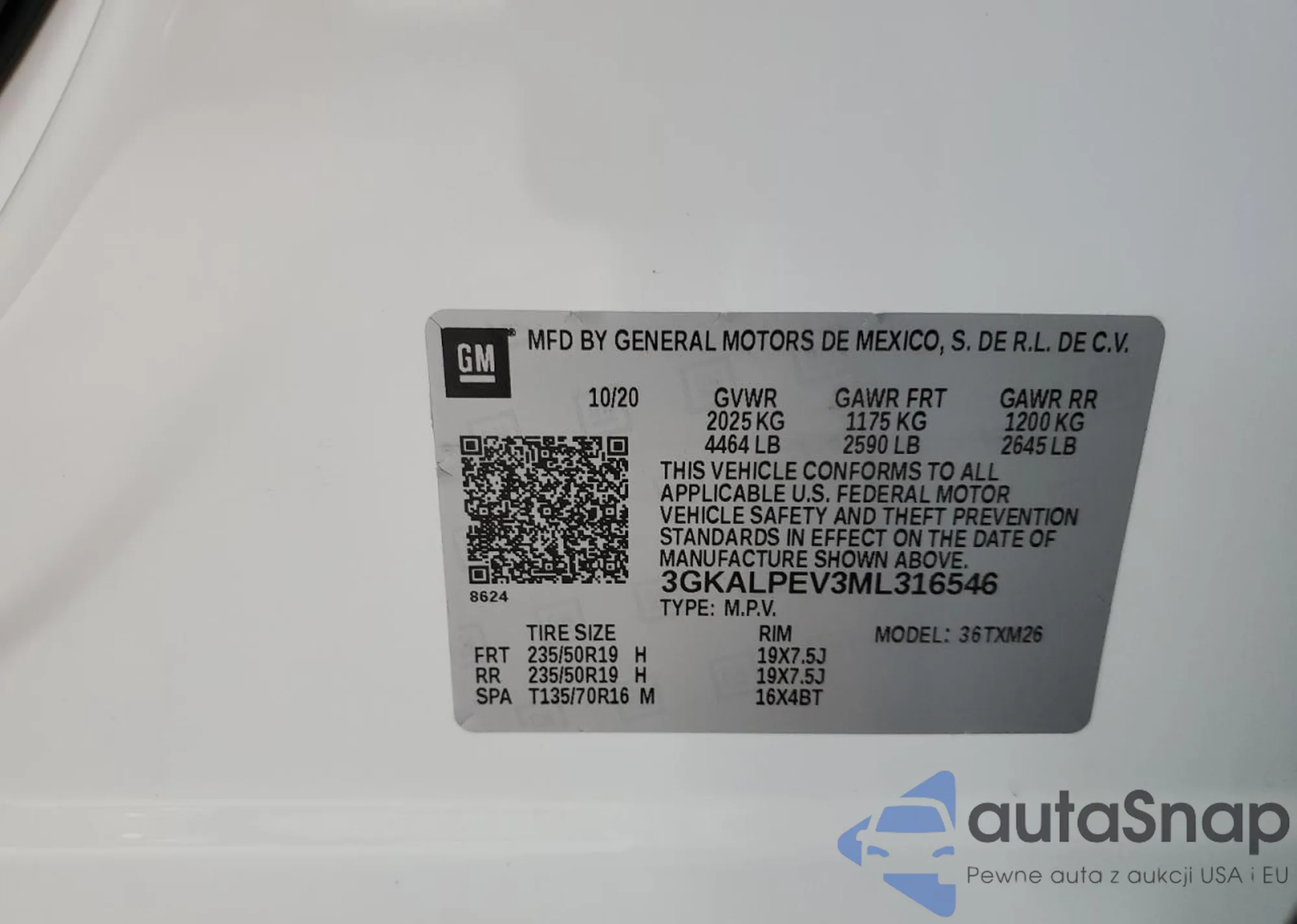 • VIN 3GKALPEV3ML324842