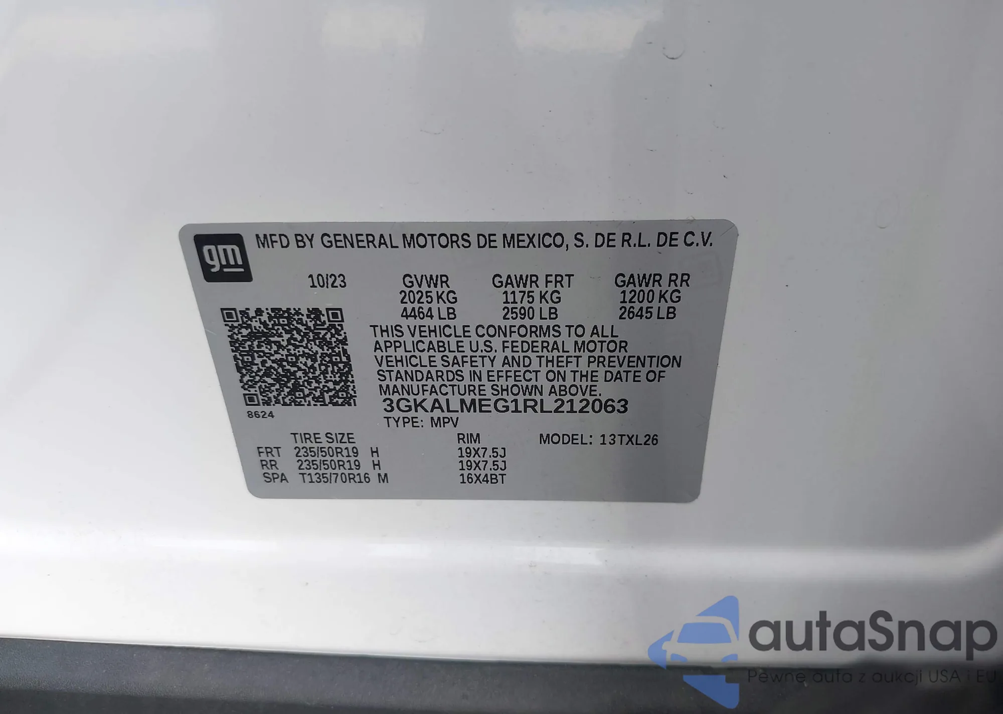 LOT: 43898171 VIN: 3GKALMEG7RL135831