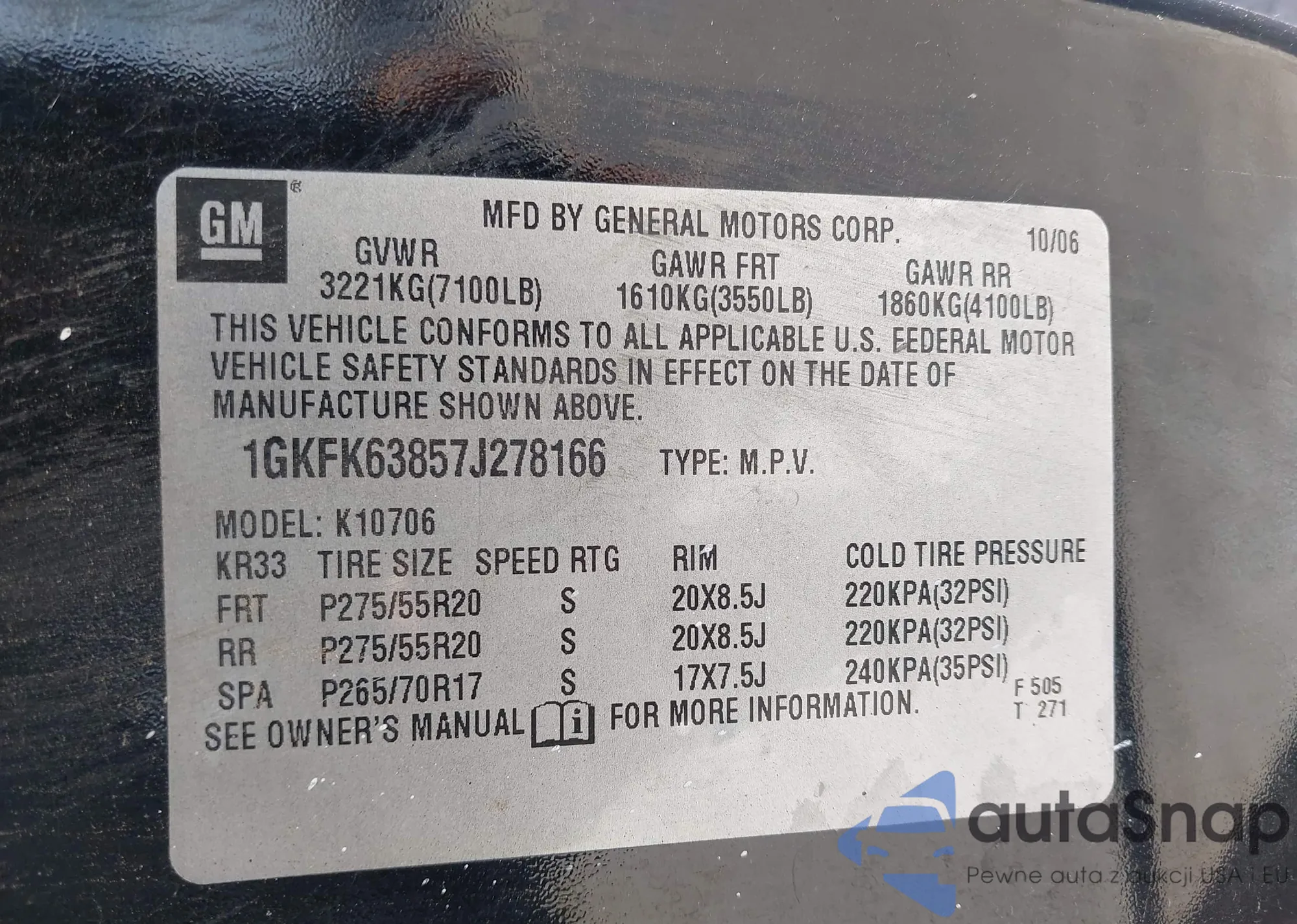 LOT: 44442095 VIN: 1GKFK668X7J174557
