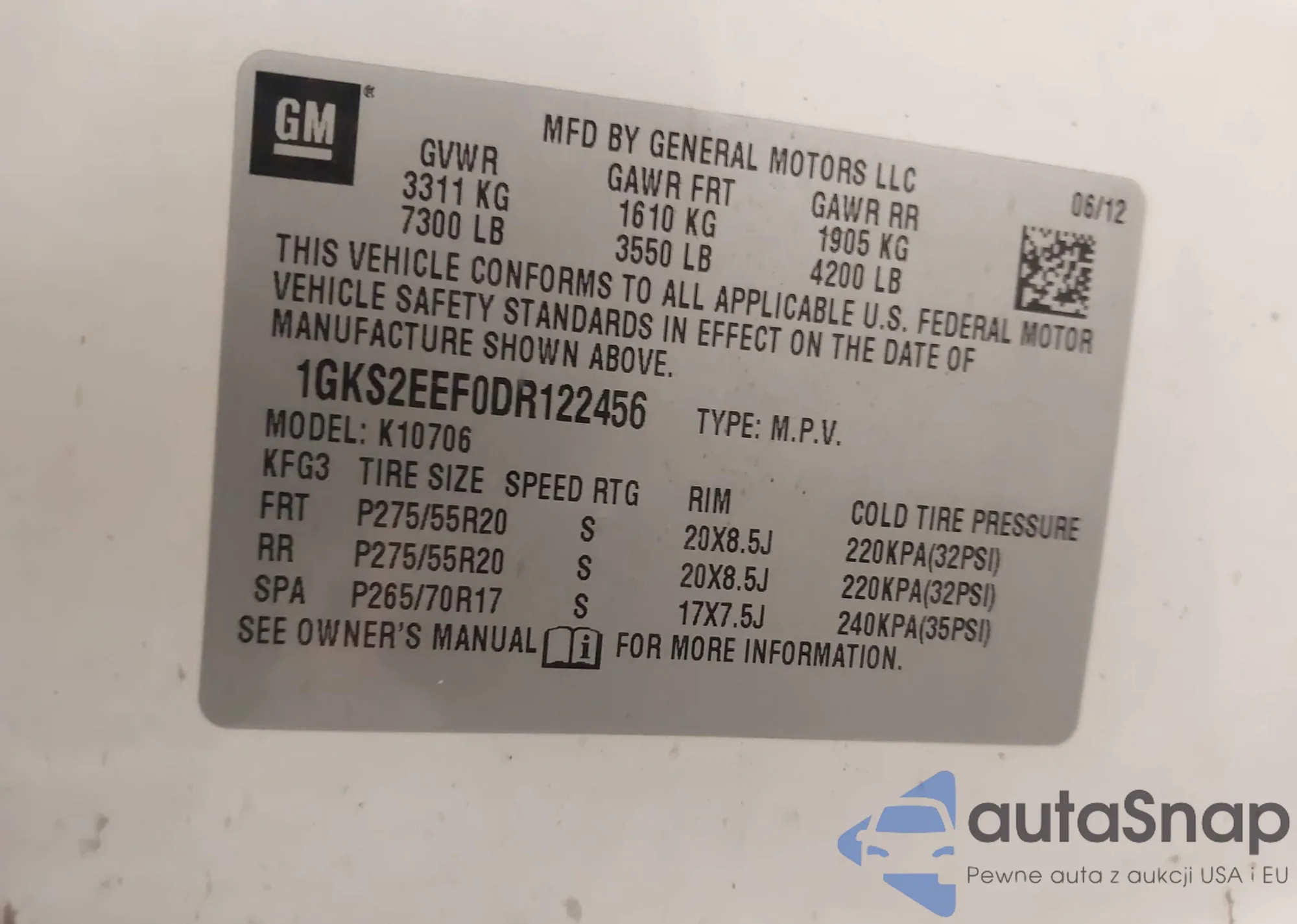 • VIN 1GKS2EEF3DR353710
