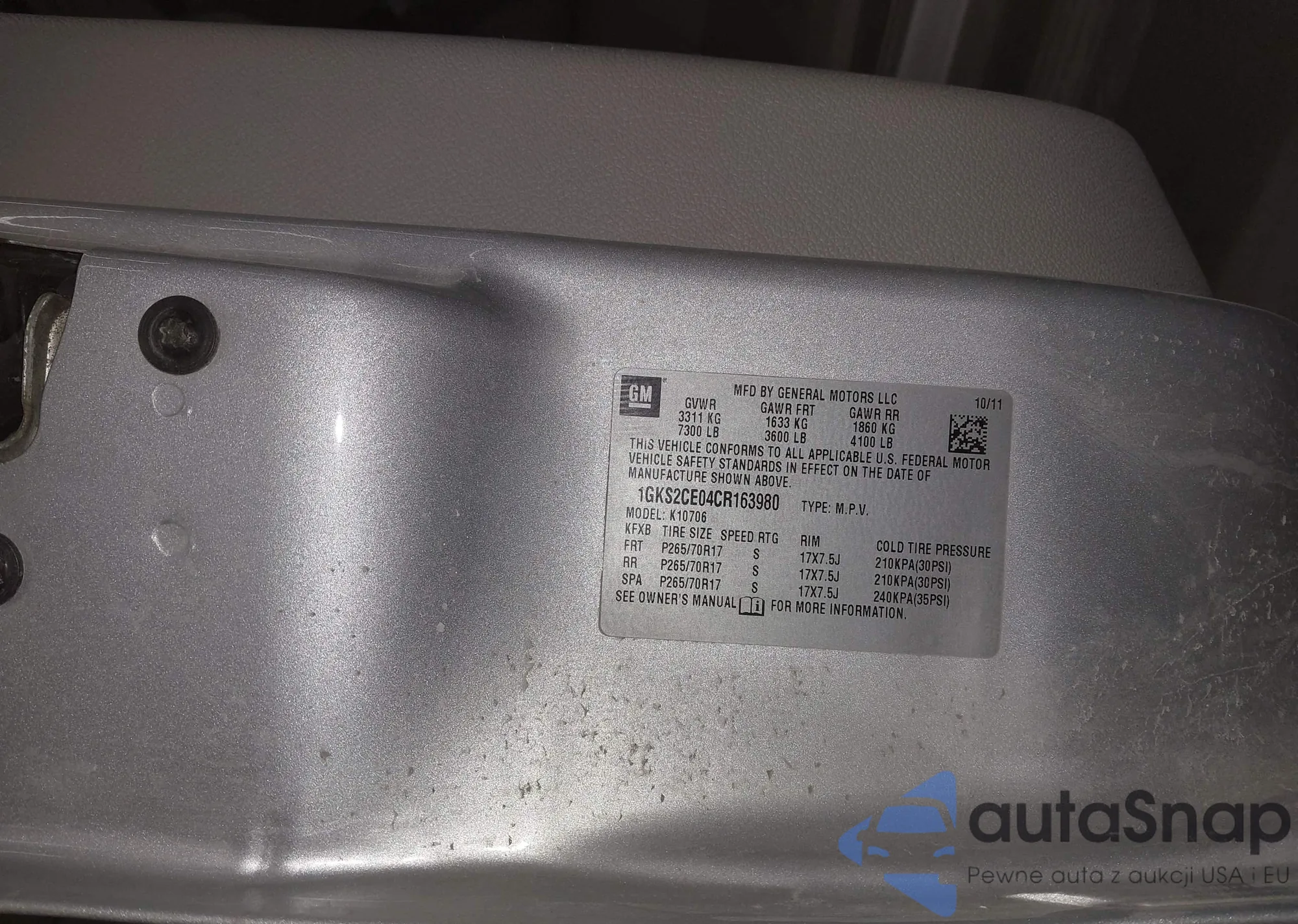 LOT: 44218257 VIN: 1GKS2CE04CR163980