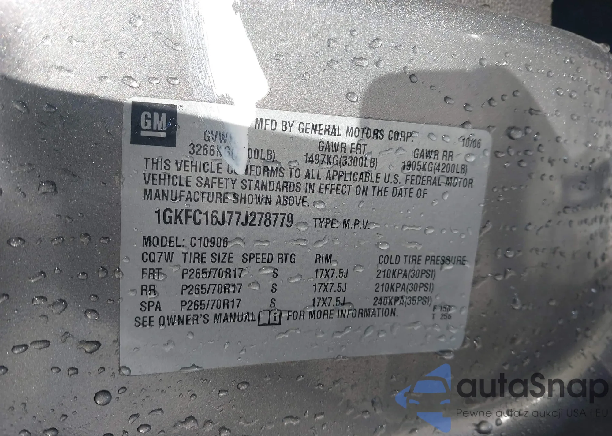 LOT: 44231752 VIN: 1GKFC16J77J278779