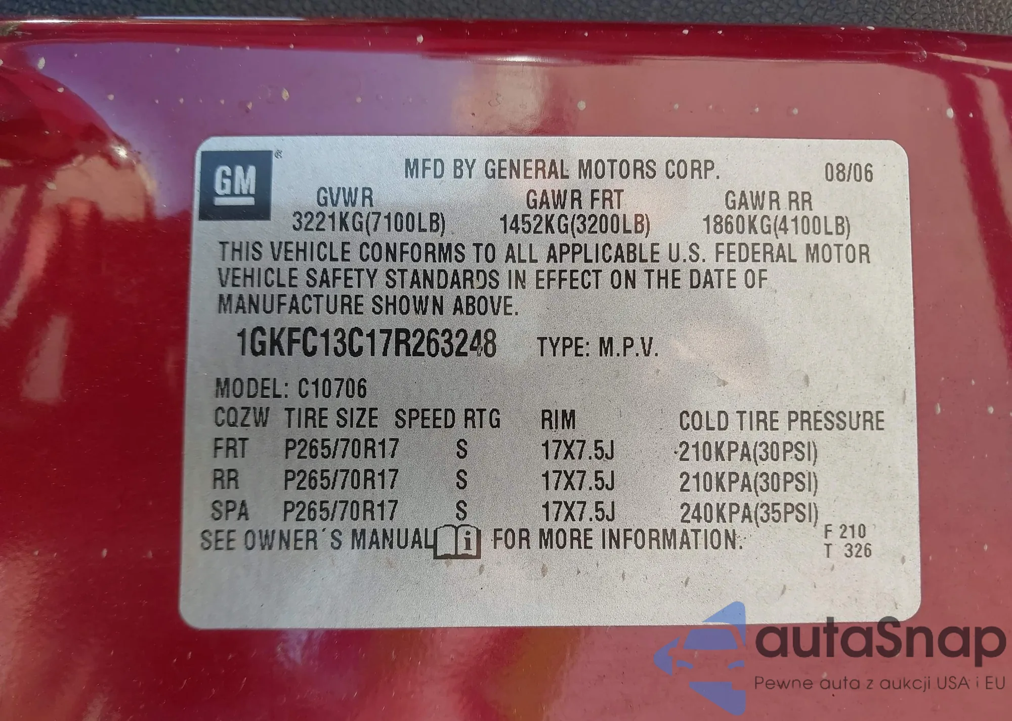 LOT: 44240662 VIN: 1GKFC13C17R263248