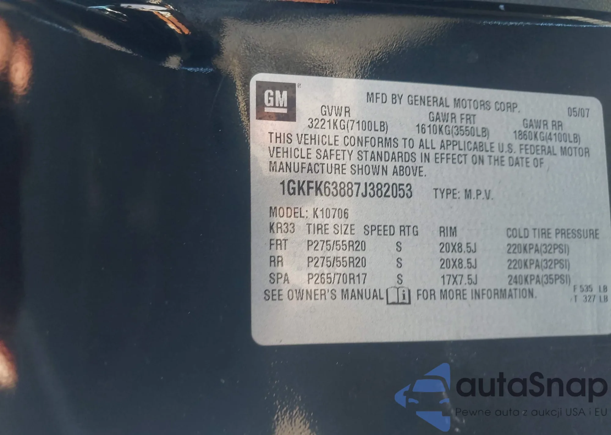 LOT: 44294983 VIN: 1GKFK63887J382053