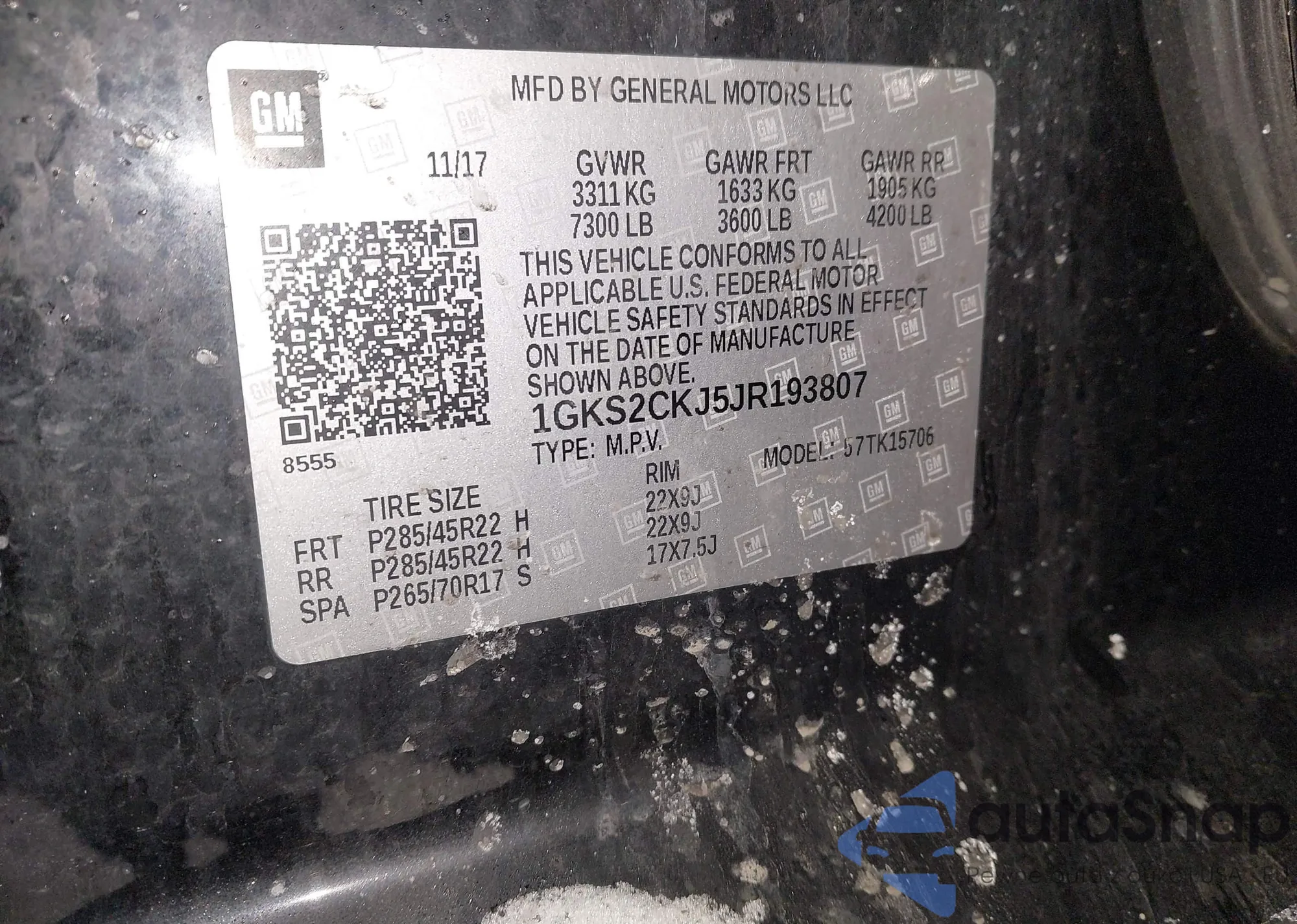 • VIN 1GKS2CKJ5JR193807