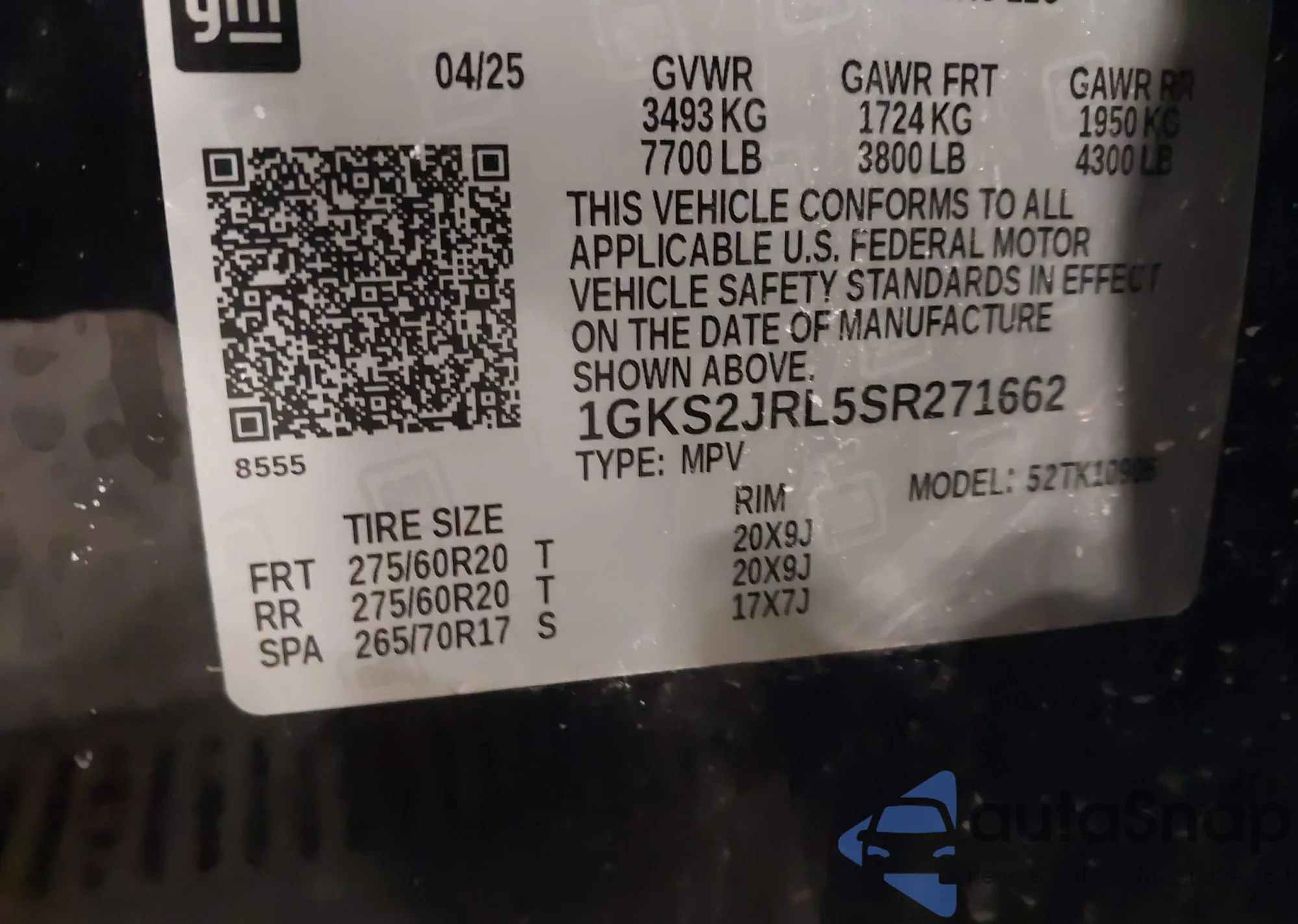 LOT: 44307229 VIN: 1GKS2JRL5SR271662