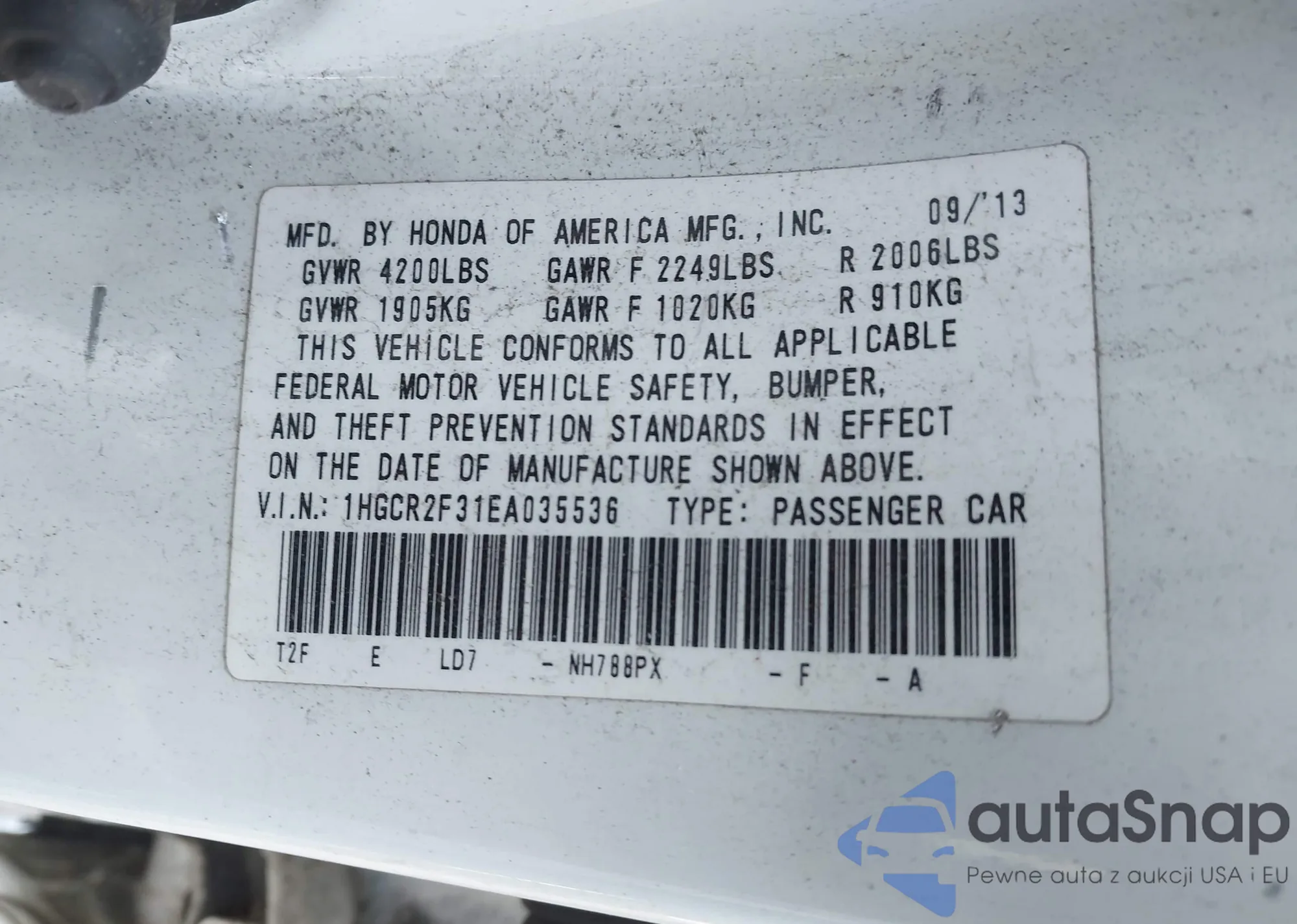 • VIN 1HGCR2F31EA035536