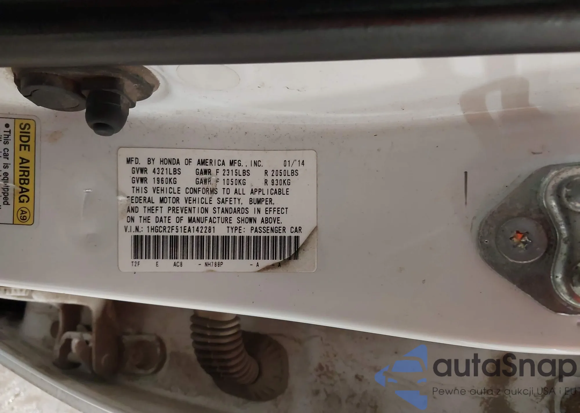 LOT: 44126089 VIN: 1HGCR2F51EA142281