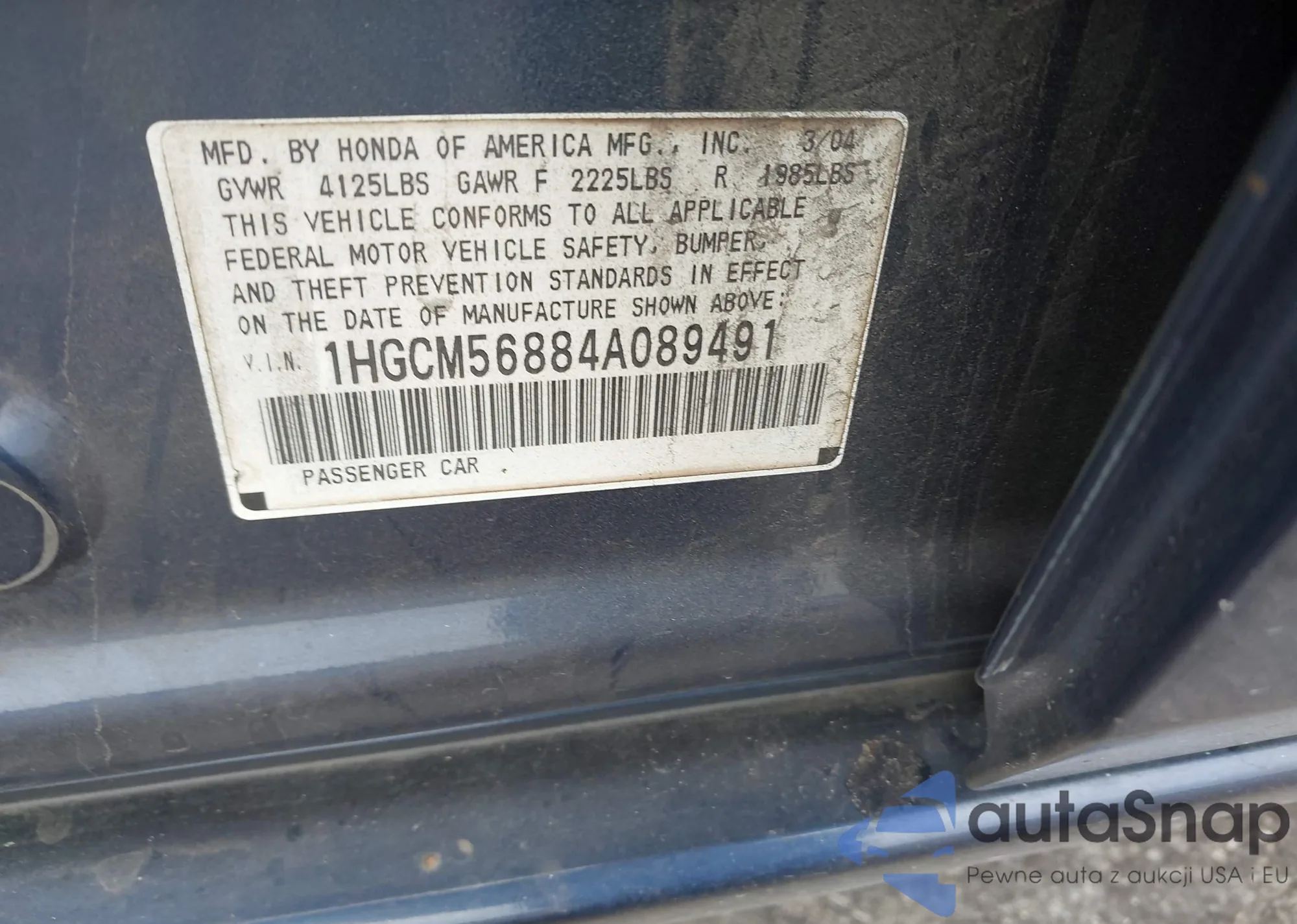 LOT: 44083773 VIN: 3HGCM56394G705396
