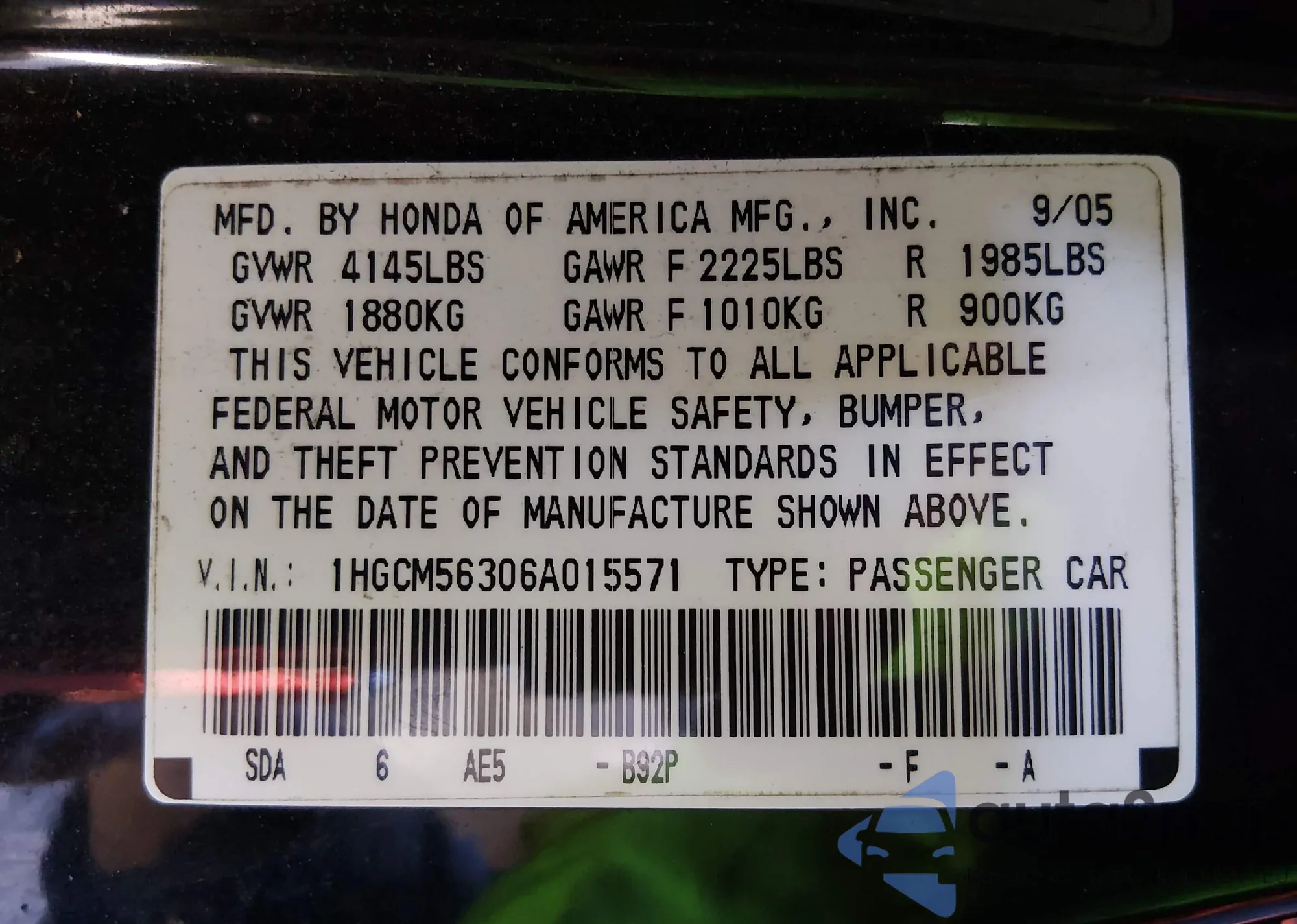 • VIN 1HGCM56306A015571