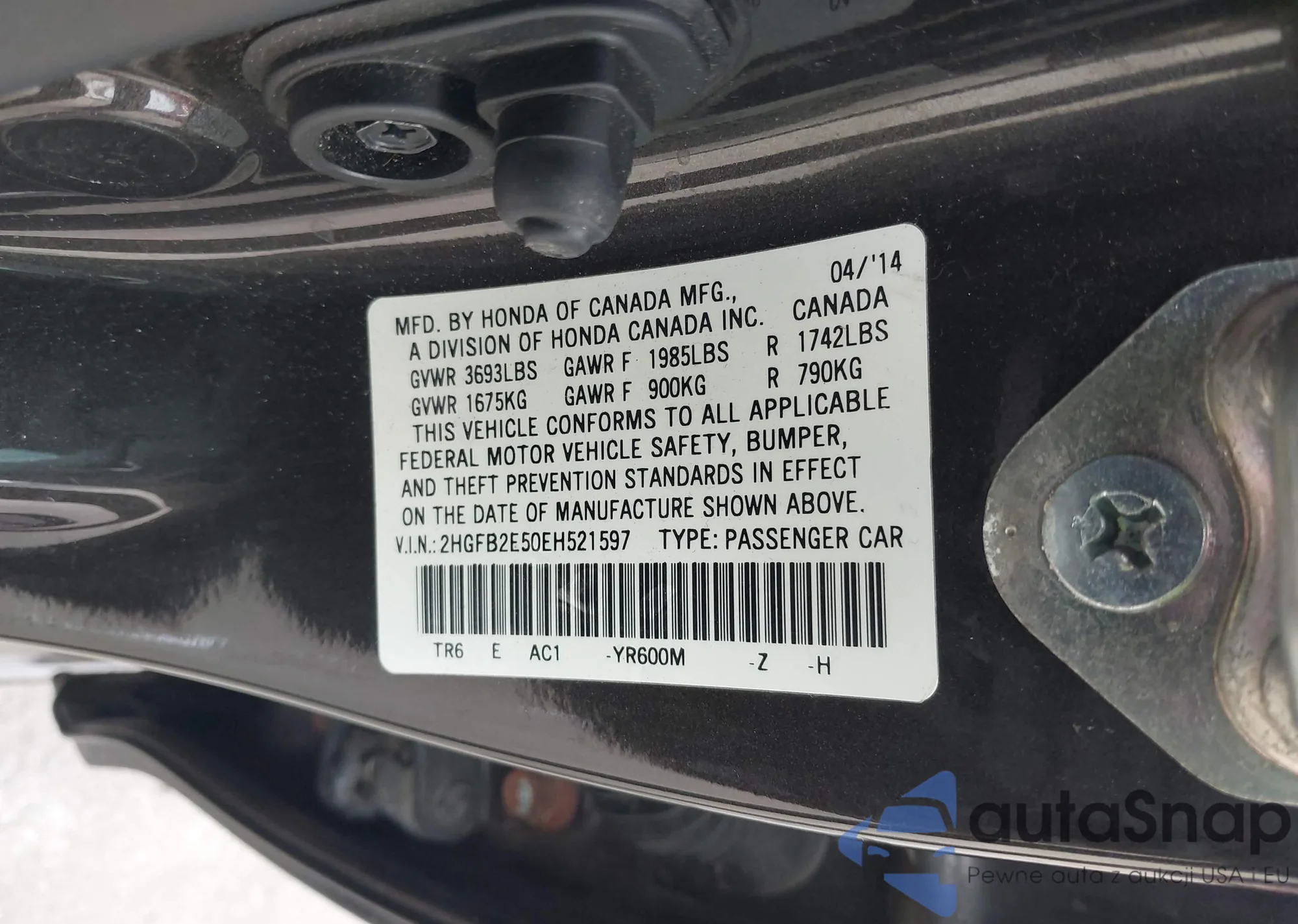 • VIN 2HGFB2E50EH521597