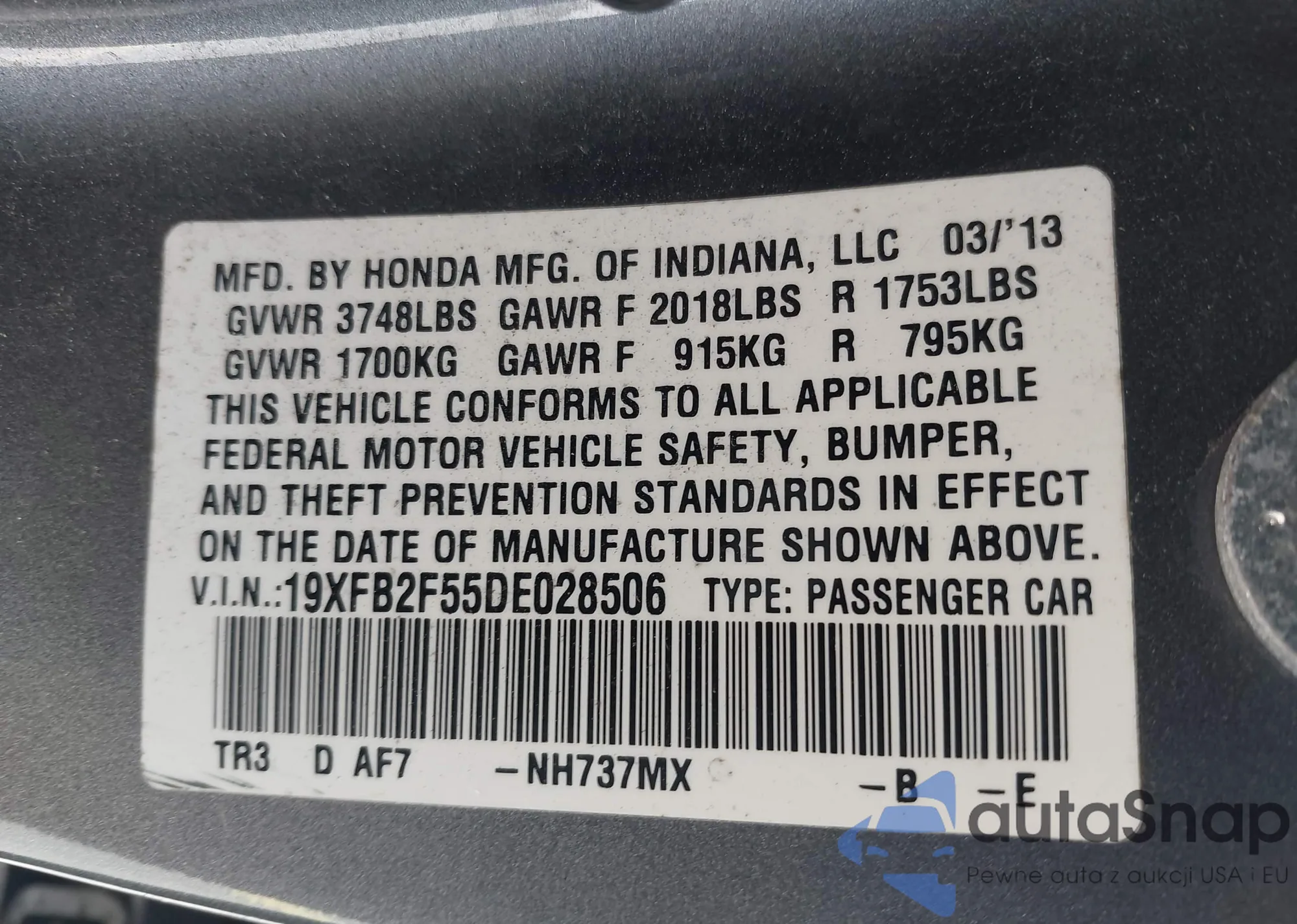 • VIN 19XFB2F55DE028506