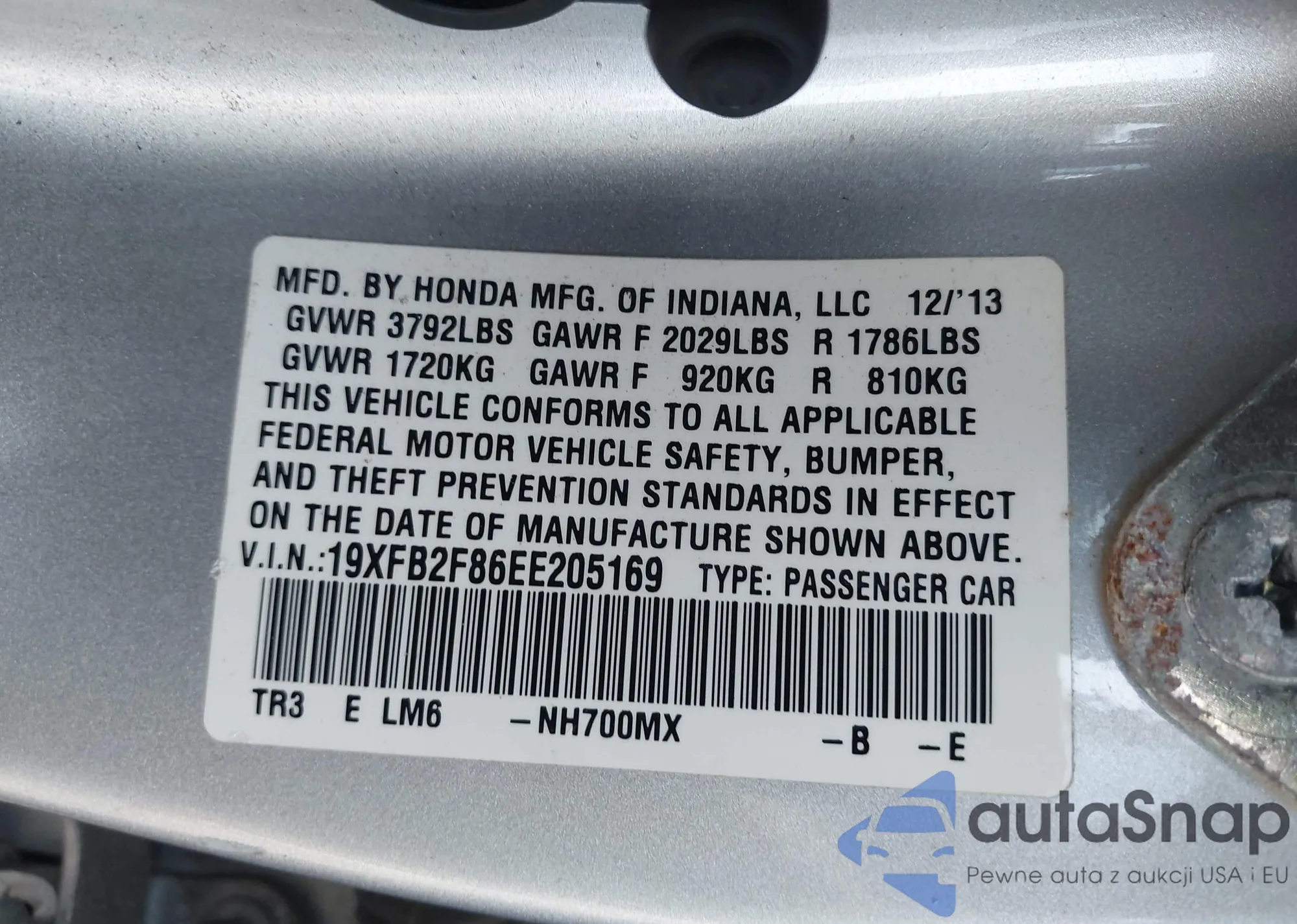 • VIN 19XFB2F86EE205169