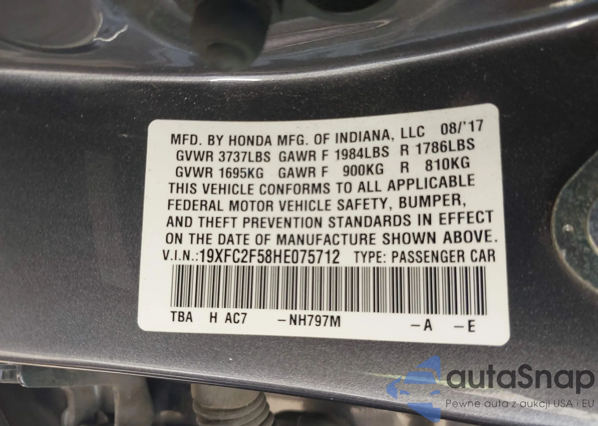 • VIN 19XFC2F58HE075712