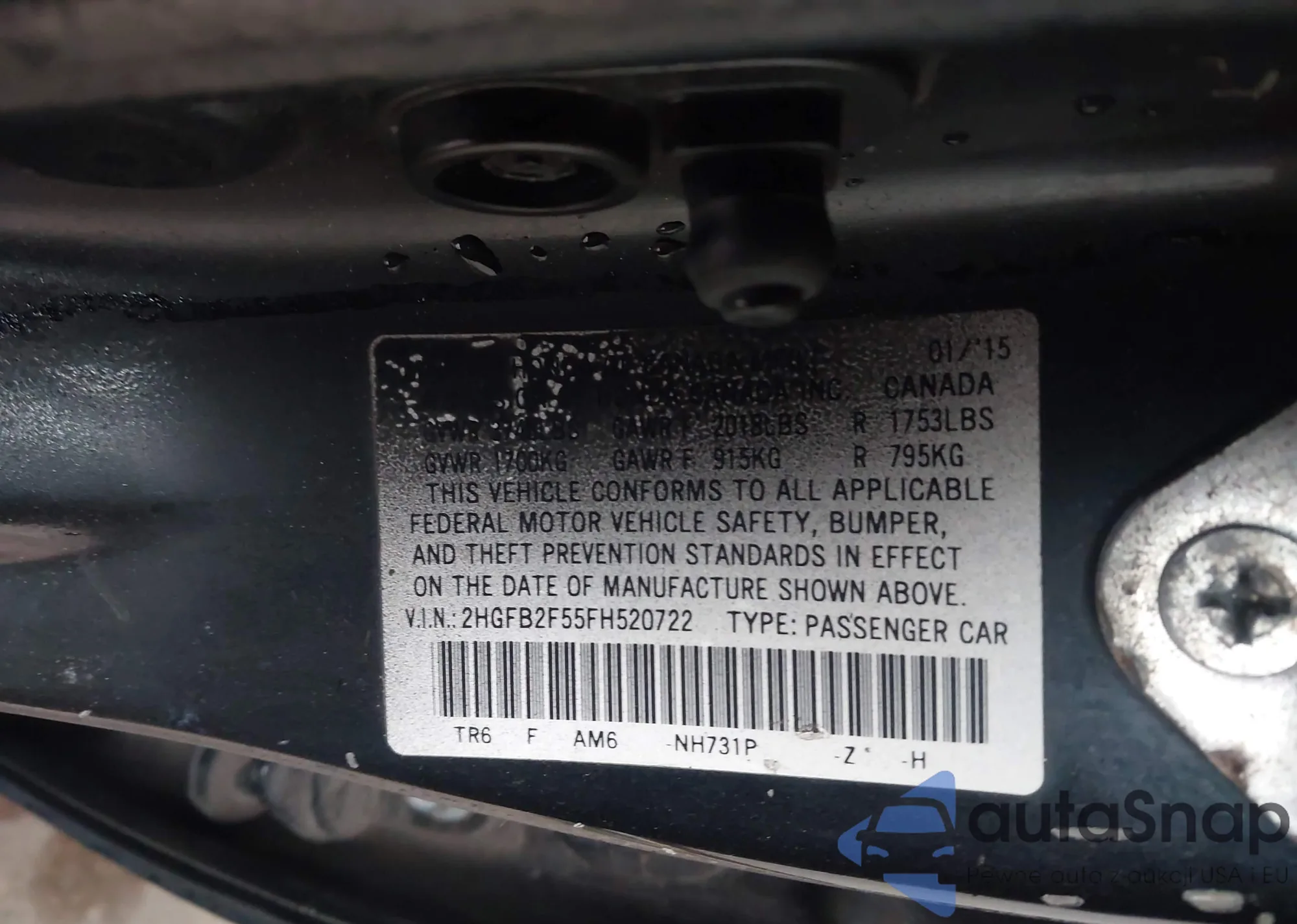 • VIN 2HGFB2F55FH520722