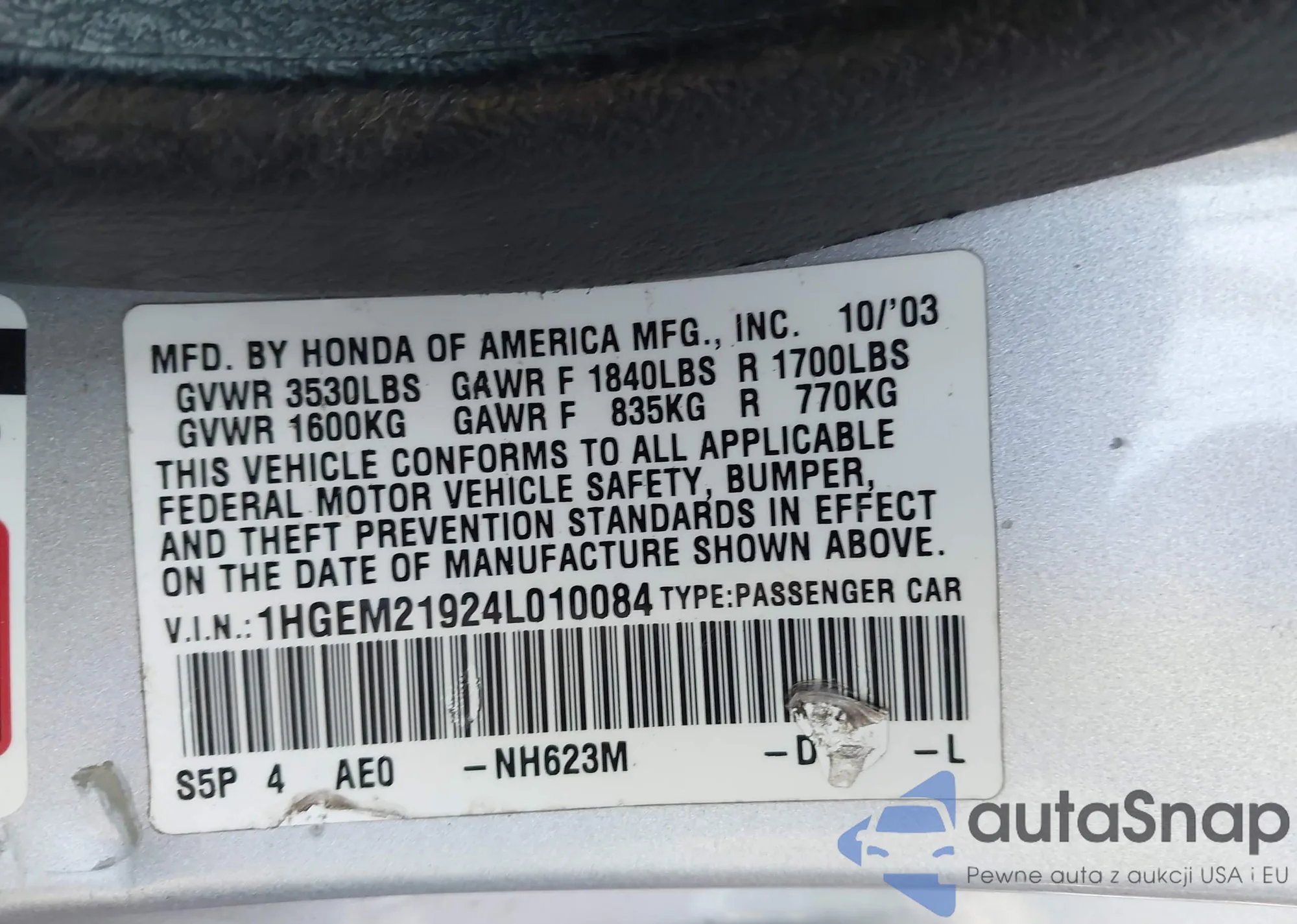 • VIN 1HGEM21924L010084