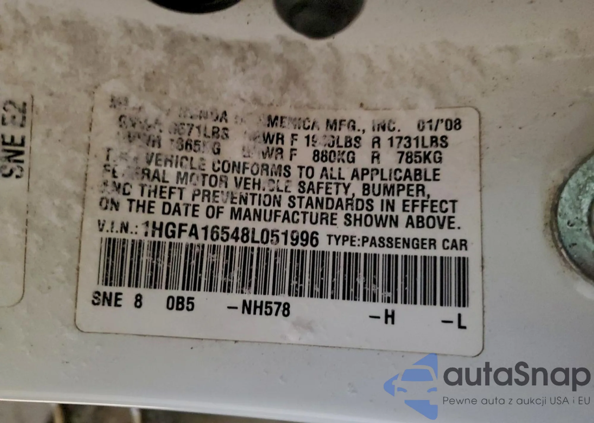 LOT: 98491665 VIN: 1HGFA16548L051996