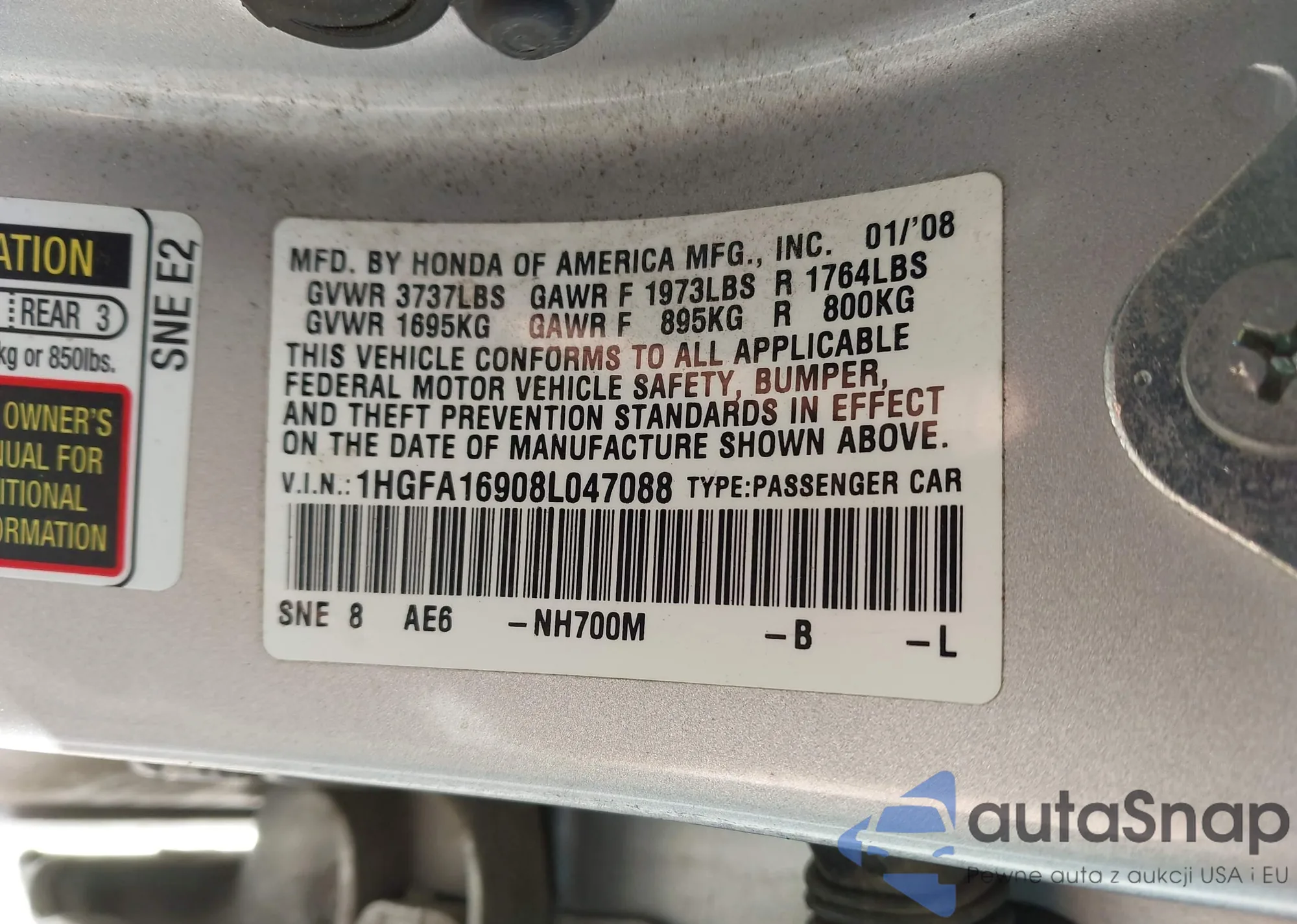 • VIN 1HGFA16908L047088