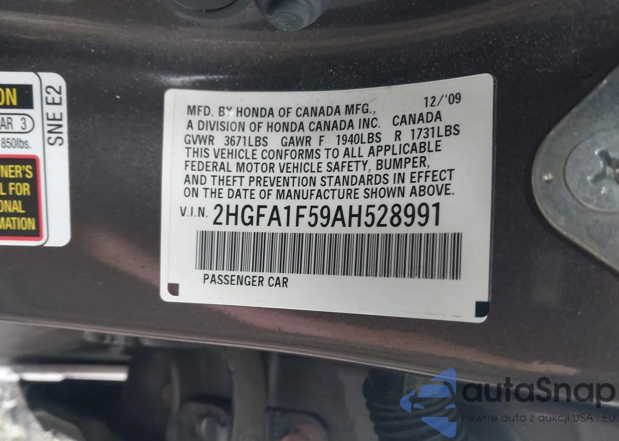 • VIN 2HGFA1F59AH528991