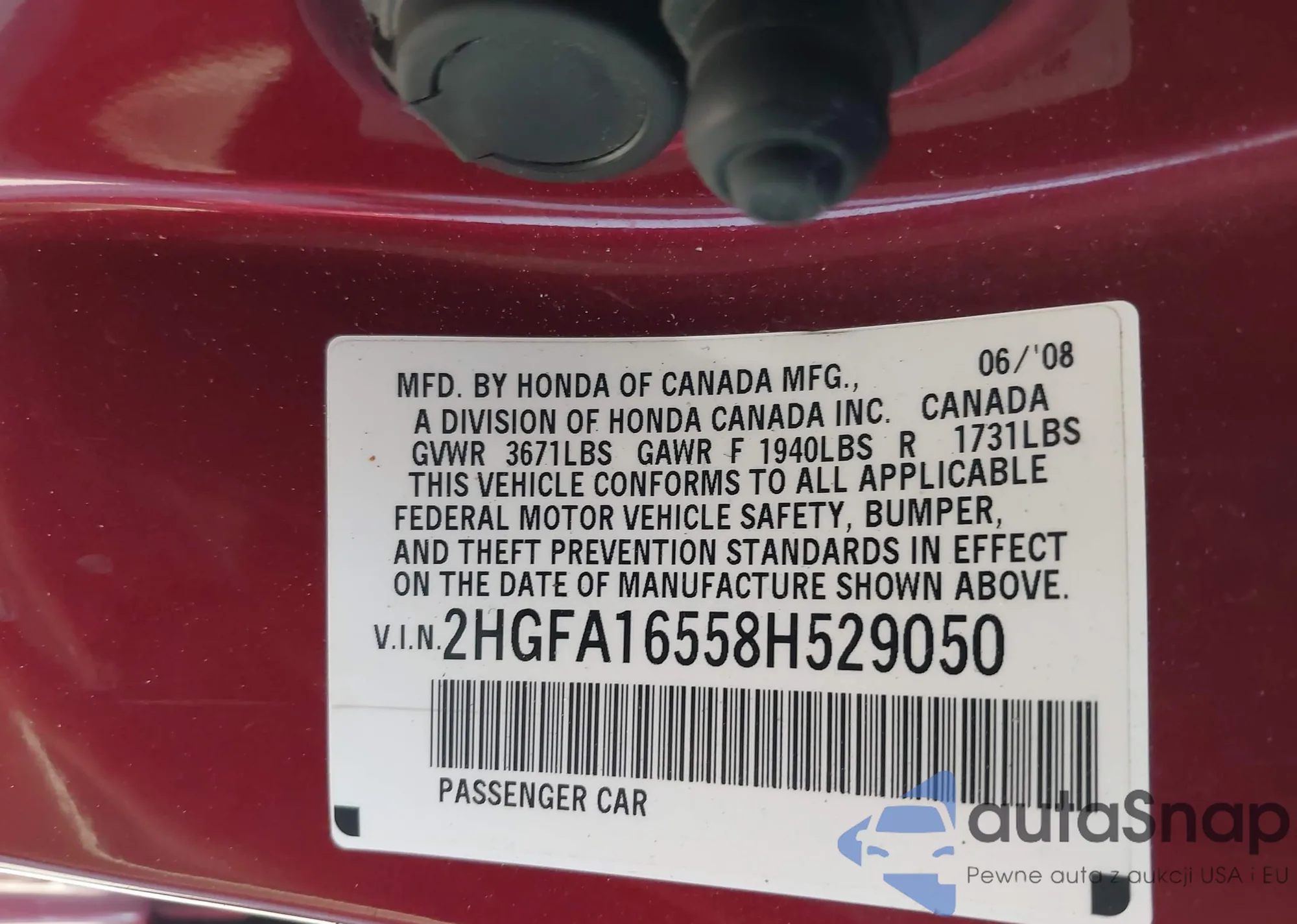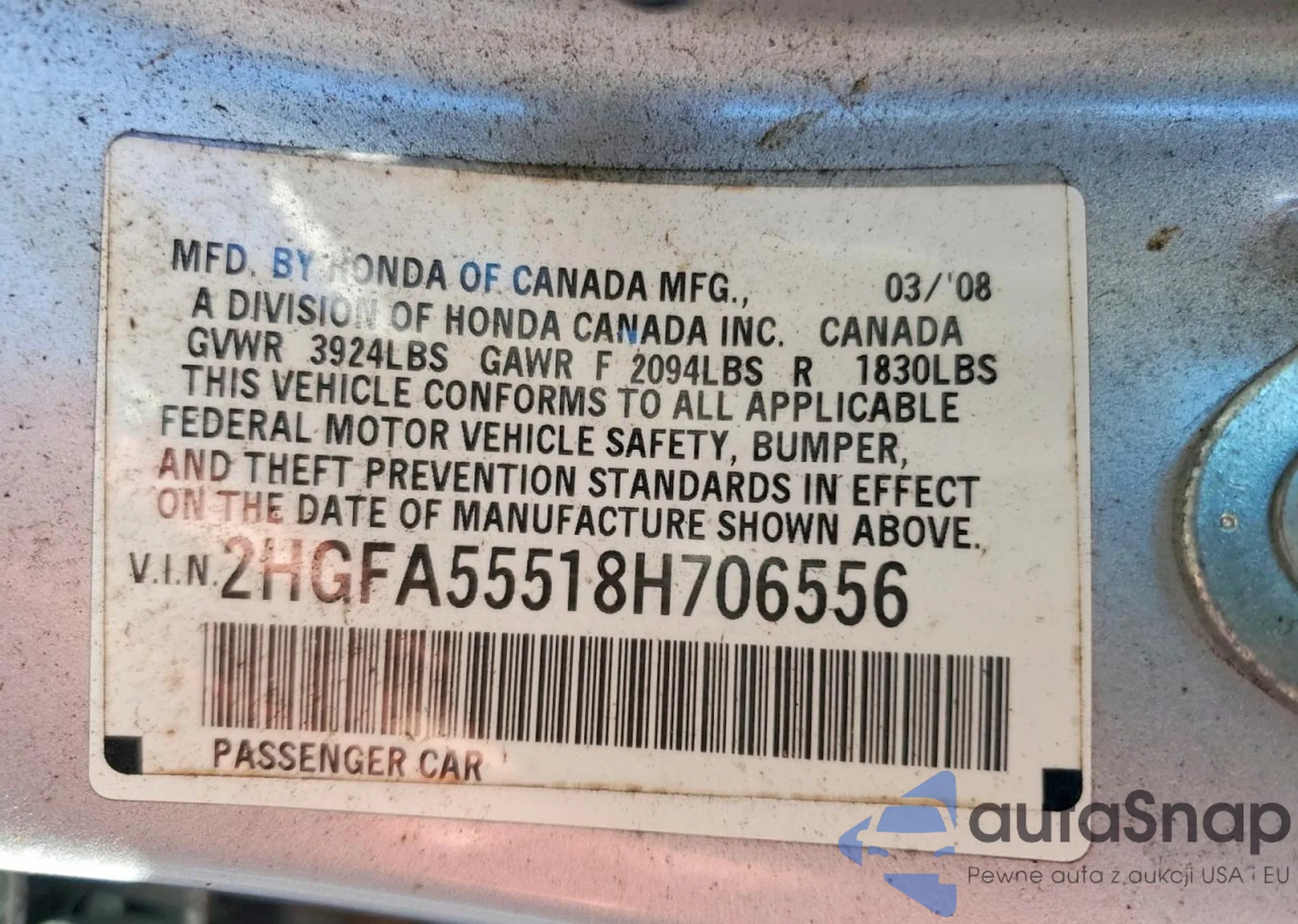 • VIN 2HGFA55518H706556