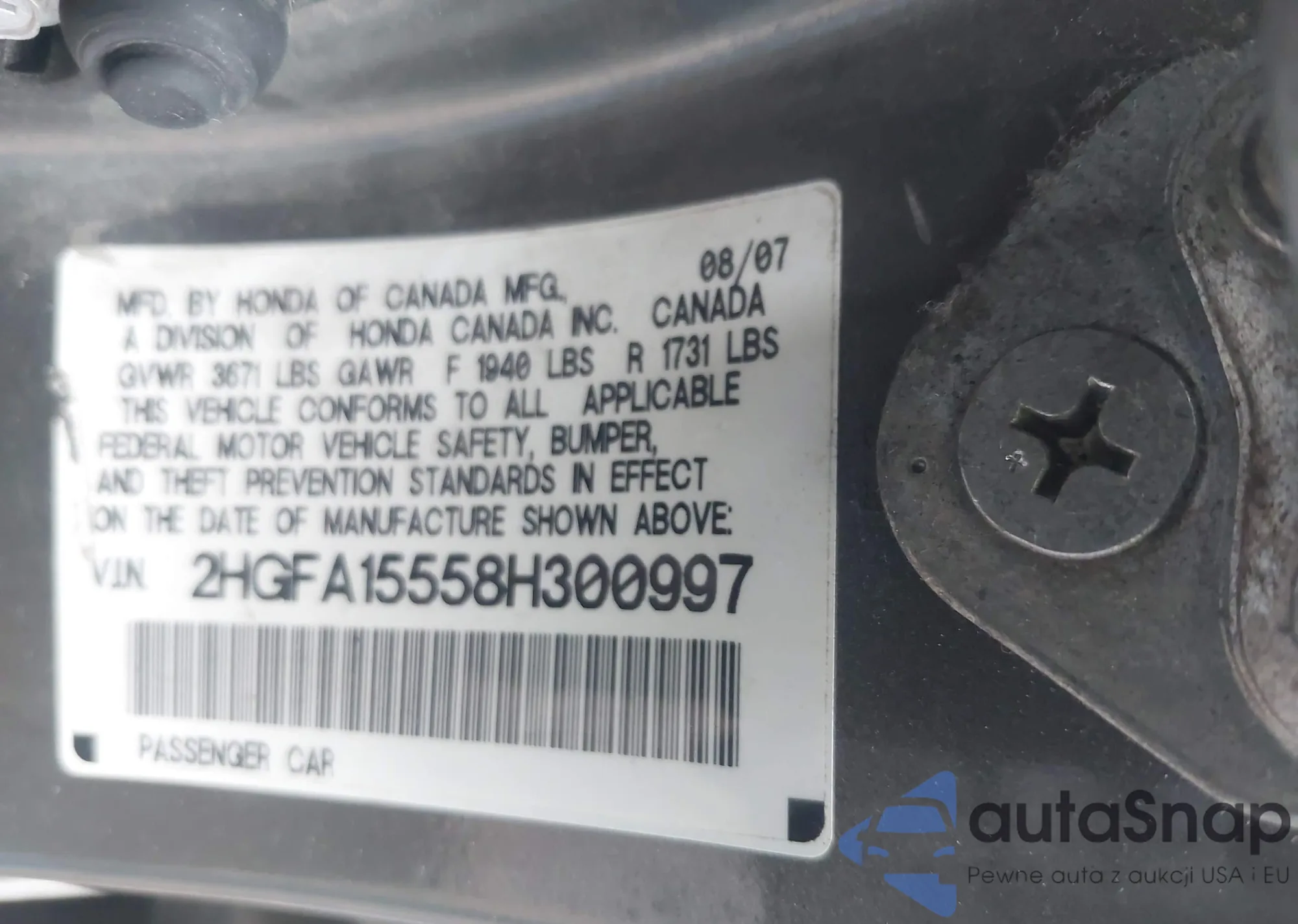 • VIN 2HGFA15558H300997