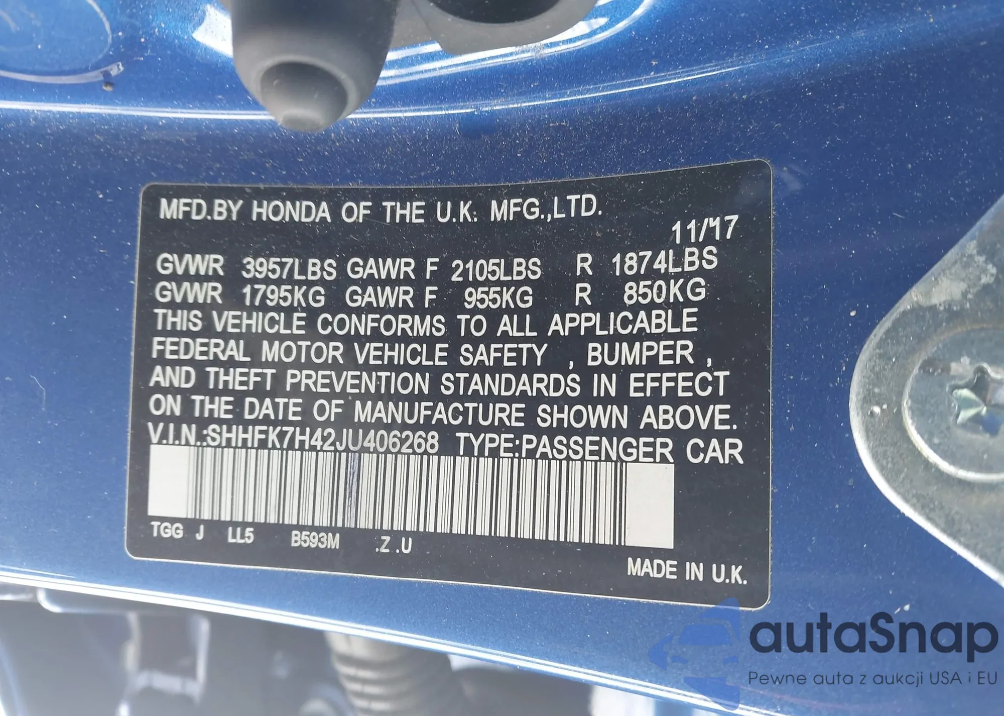 • VIN SHHFK7H42JU406268
