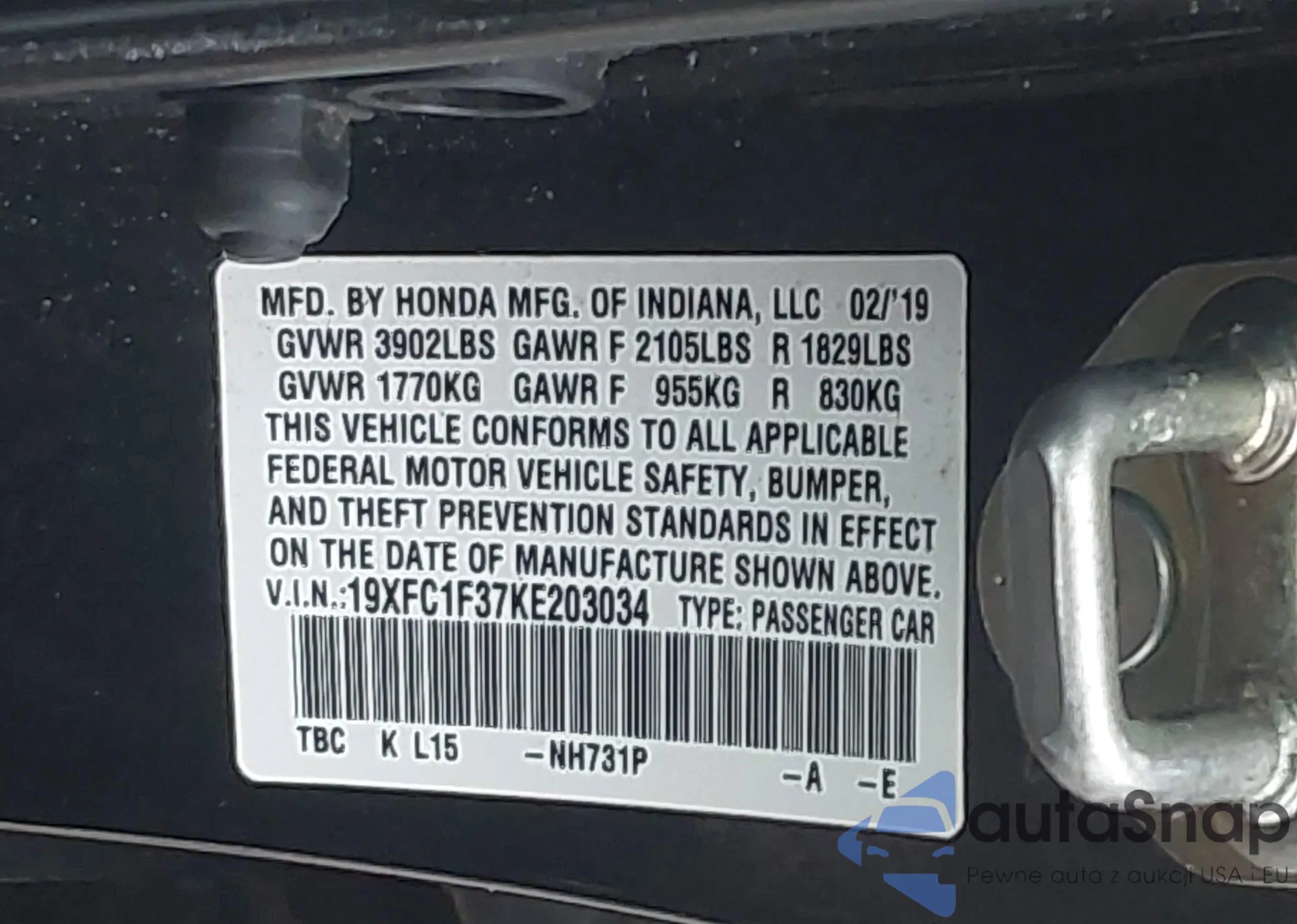 • VIN 19XFC1F37KE203034