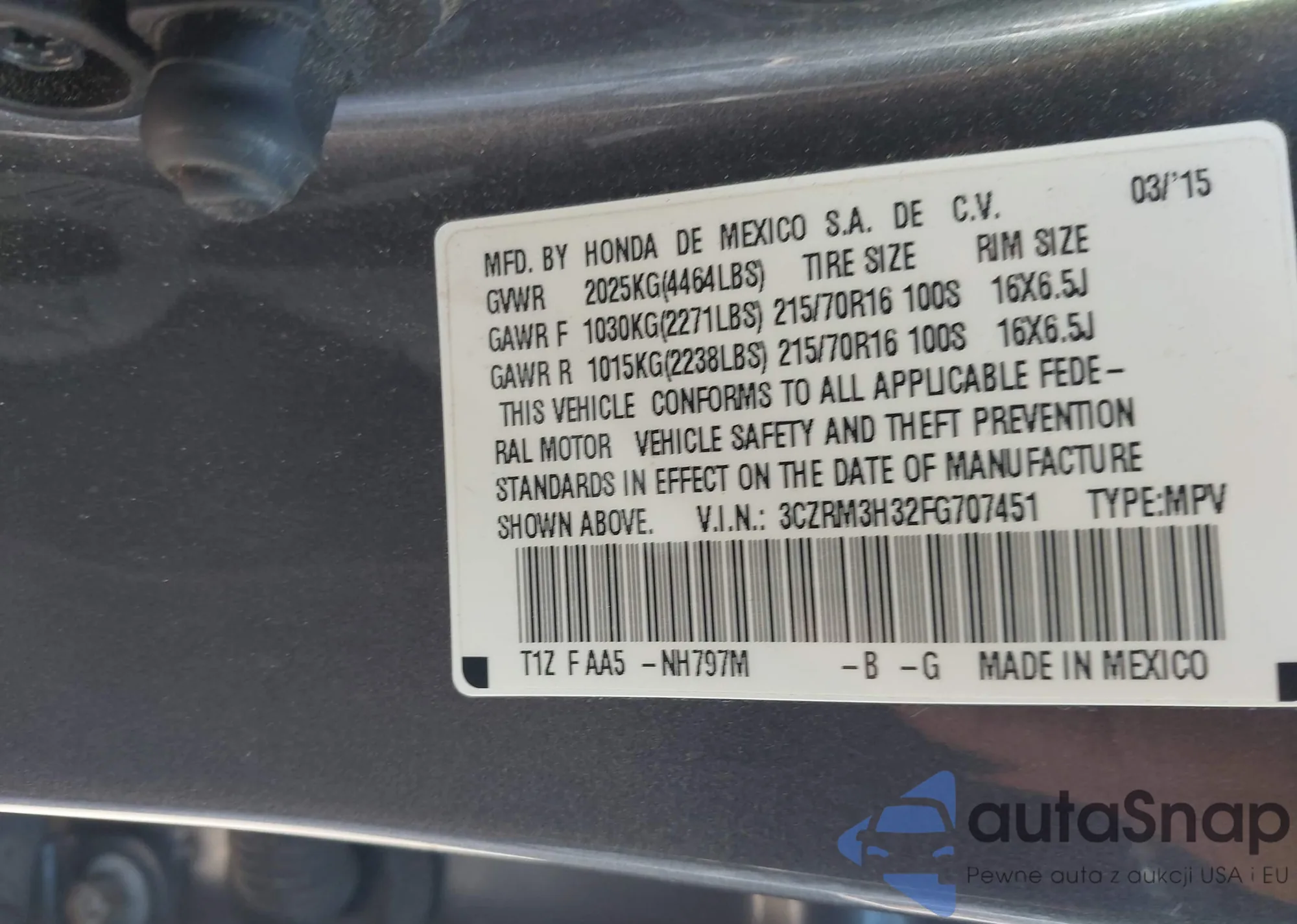 • VIN 3CZRM3H32FG707451
