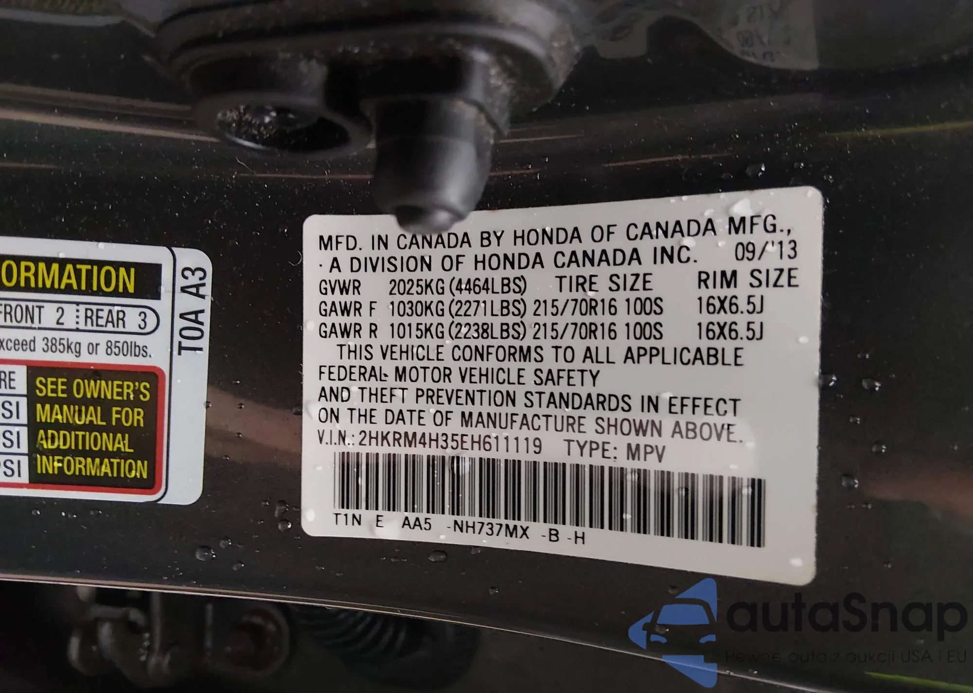 • VIN 2HKRM4H35EH611119