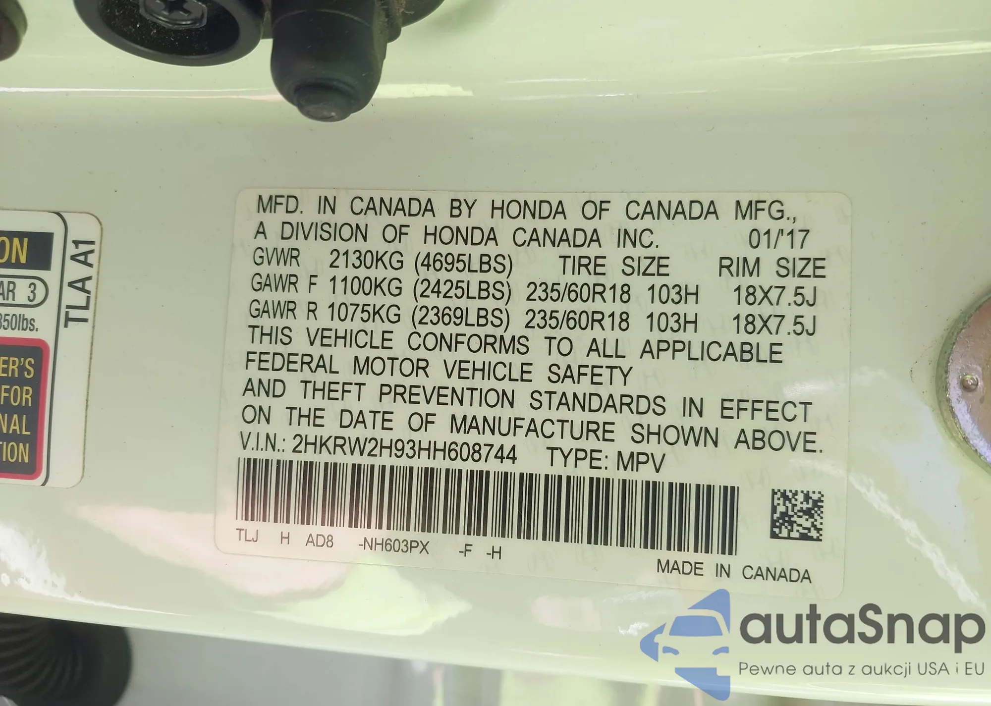 • VIN 2HKRW2H93HH608744