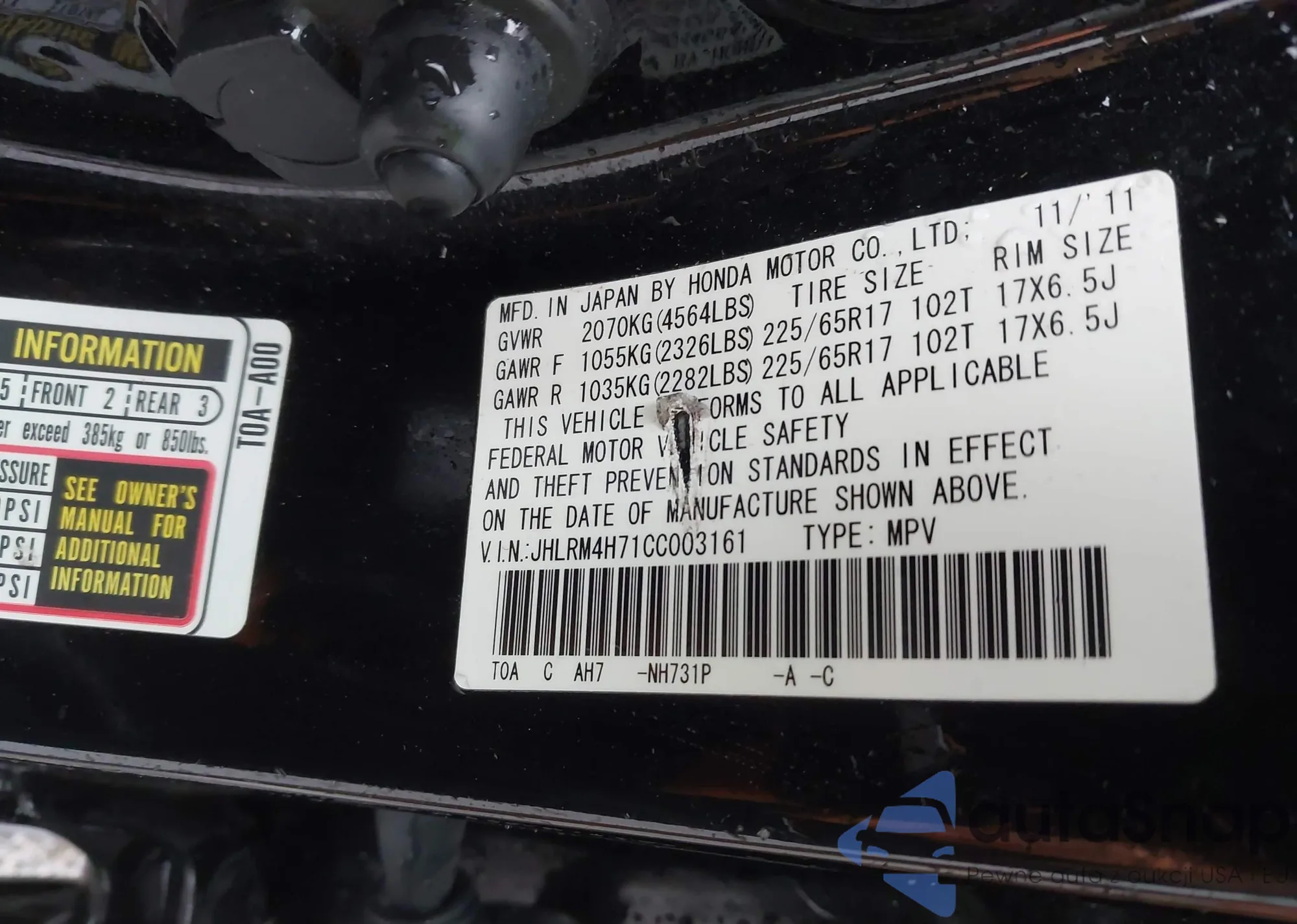 • VIN JHLRM4H71CC003161