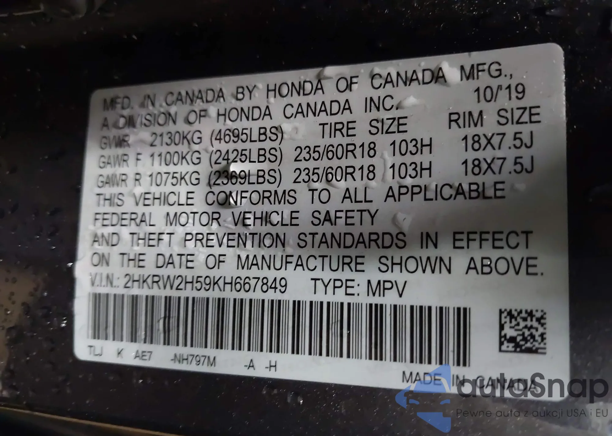 Купить Honda CR-V V из США