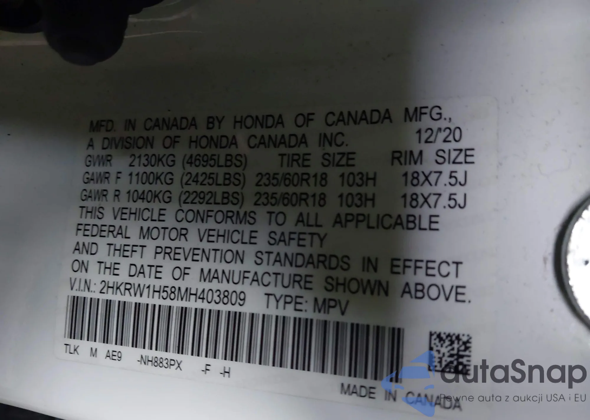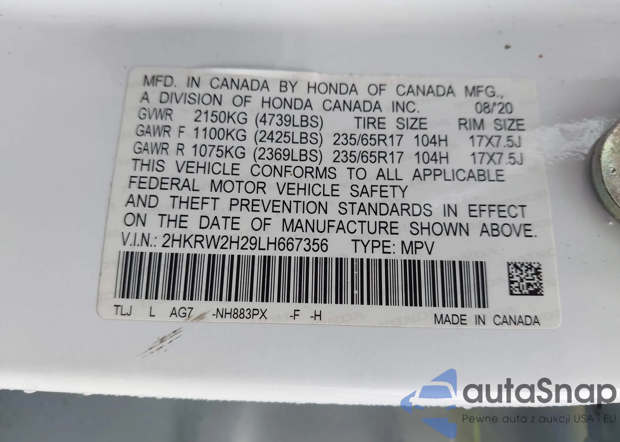 Купить Honda CR-V V из США