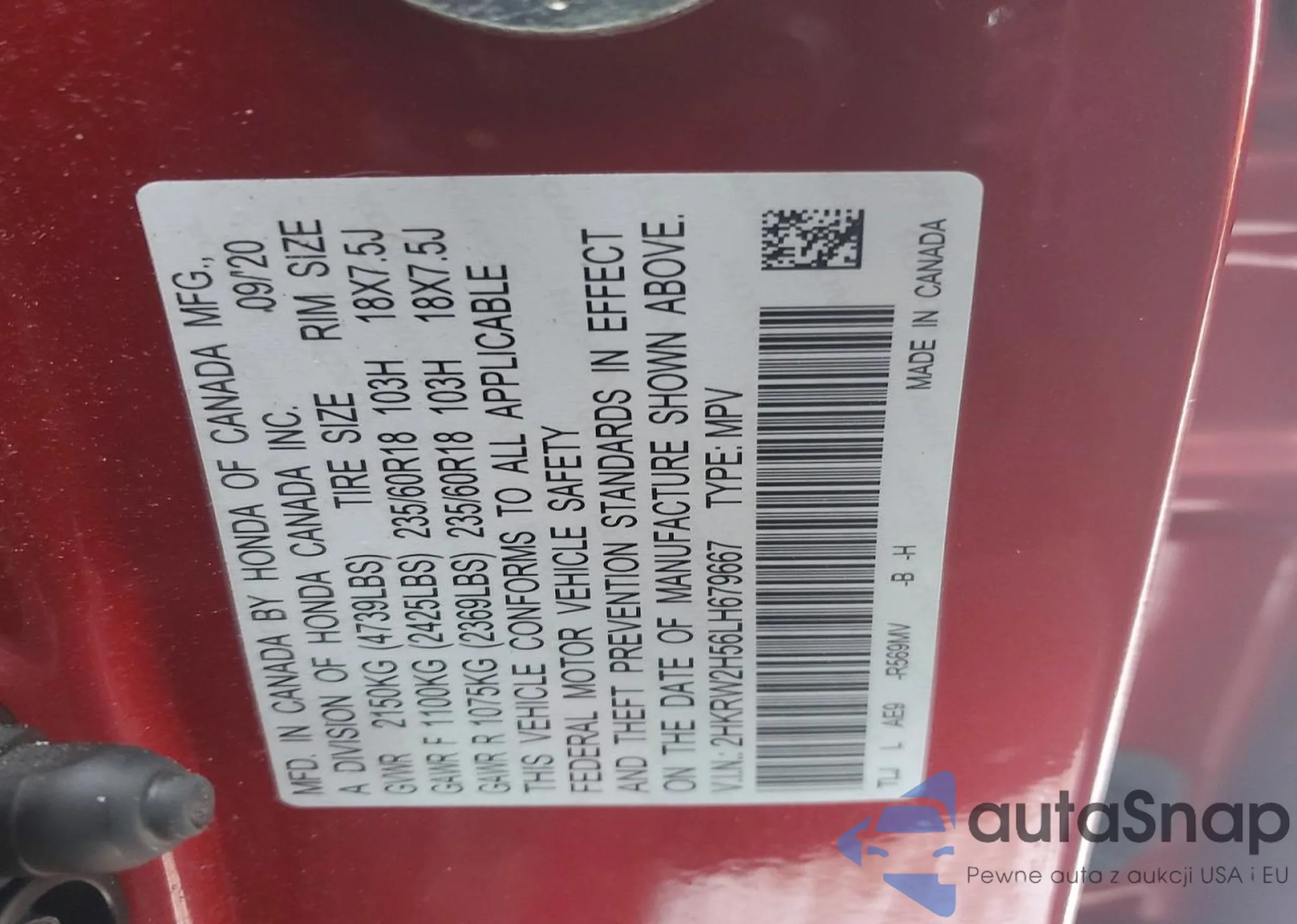 Купить Honda CR-V V из США