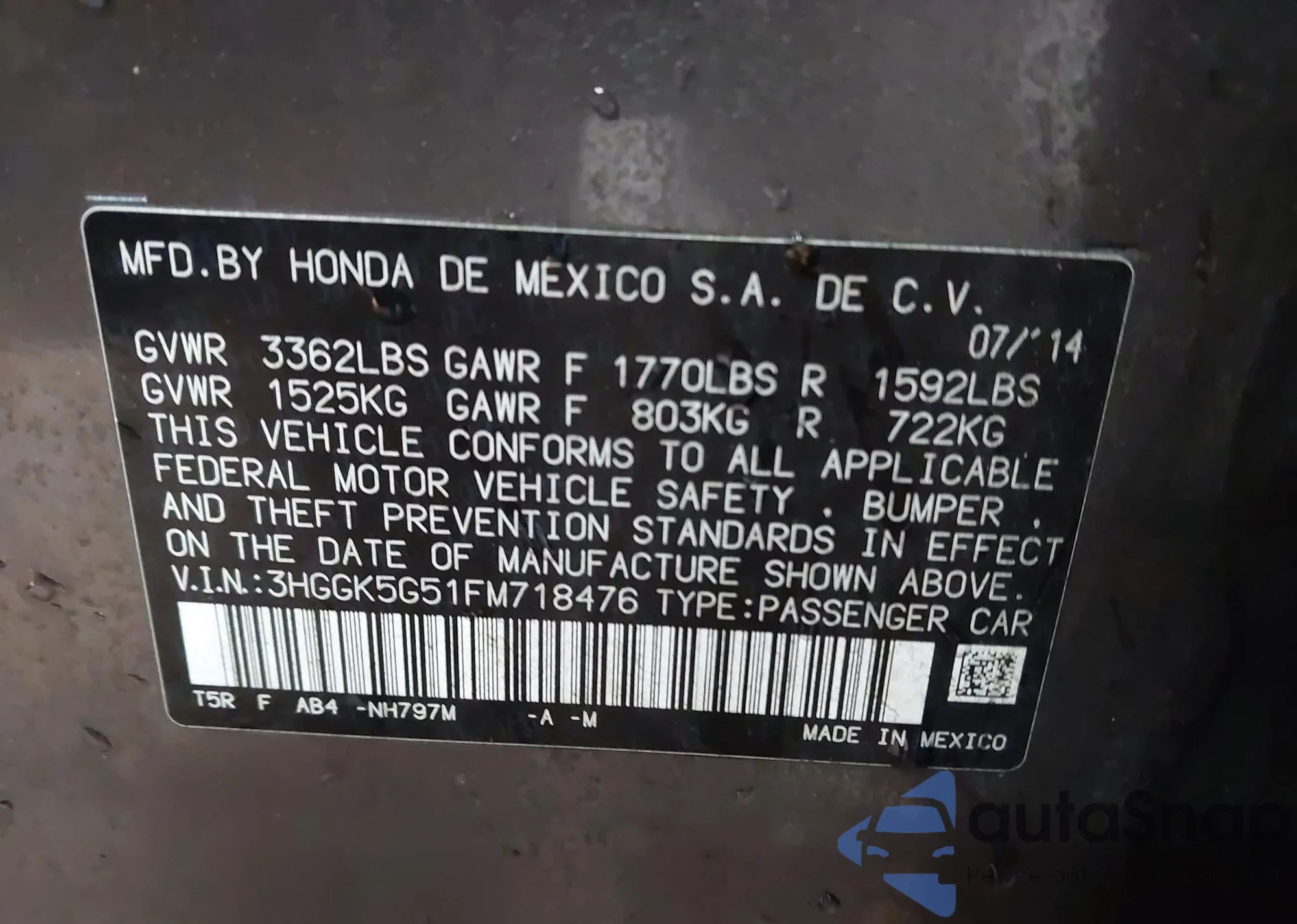 • VIN 3HGGK5G51FM718476