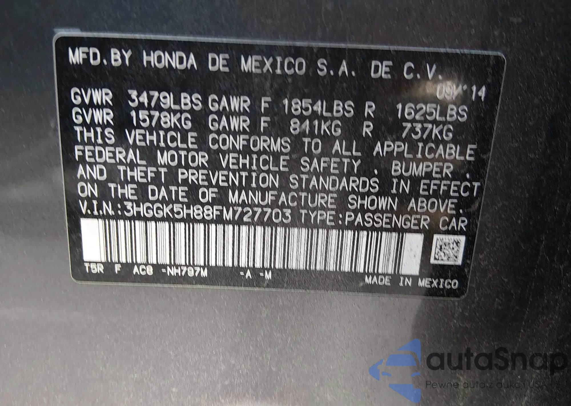 • VIN 3HGGK5H88FM727703