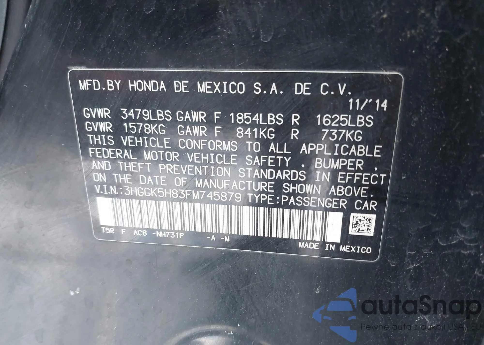 • VIN 3HGGK5H83FM745879
